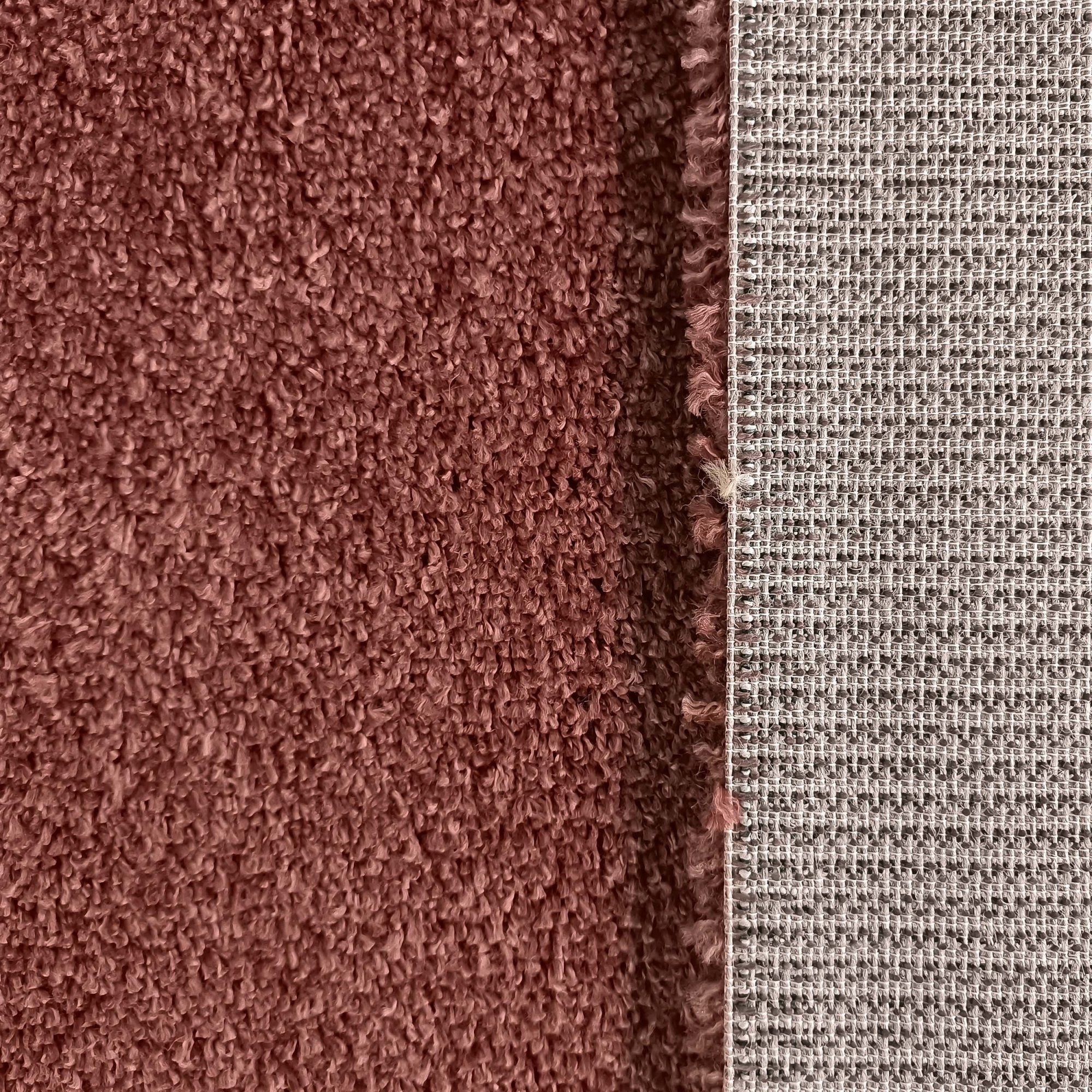 Moderní koberec z kolekce Santo v červené barvě je huňatý koberec. To znamená, že se jedná o koberec s výškou vlasu přibližně 30 mm, jehož povrch je hebký a příjemný na dotek a chůze po něm je pro naše nohy opravdovým zážitkem a potěšením. Koberec se bude skvěle vyjímat v každém moderním obývacím pokoji poblíž pohovky a konferenčního stolku. Bude také vypadat dobře v samém středu místnosti. Můžeme jej také snadno využít v ložnici nebo v pokoji každého teenagera. Je odolný a pevný. Jeho výhodou je také to, že má certifikát OEKO-TEX, který potvrzuje, že je vyroben z nejkvalitnějších materiálů bezpečných pro naše zdraví.