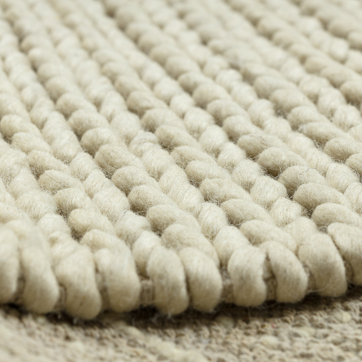 Kusový koberec Tahar 99004B cream v krémové barvě zaujme svou jednoduchou, ale působivou strukturou. Je ručně tkaný z kvalitní vlny, která je na dotek měkká a zároveň pevná. Povrch tvoří husté, vodorovně vedené copánkové pruhy, které vytvářejí výraznou texturu s moderním, přesto přirozeným vzhledem. Tento vzor dodává koberci plastický efekt a vynikne zejména v interiéru, kde dominují přírodní materiály a neutrální tóny. Koberec je ideální do ložnice, obýváku i pracovny, tlumí hluk, izoluje teplo a díky ruční výrobě má každý kus originální charakter. Vlna navíc přirozeně odpuzuje nečistoty a je dlouhodobě odolná. Výška vlasu: 0 mm.