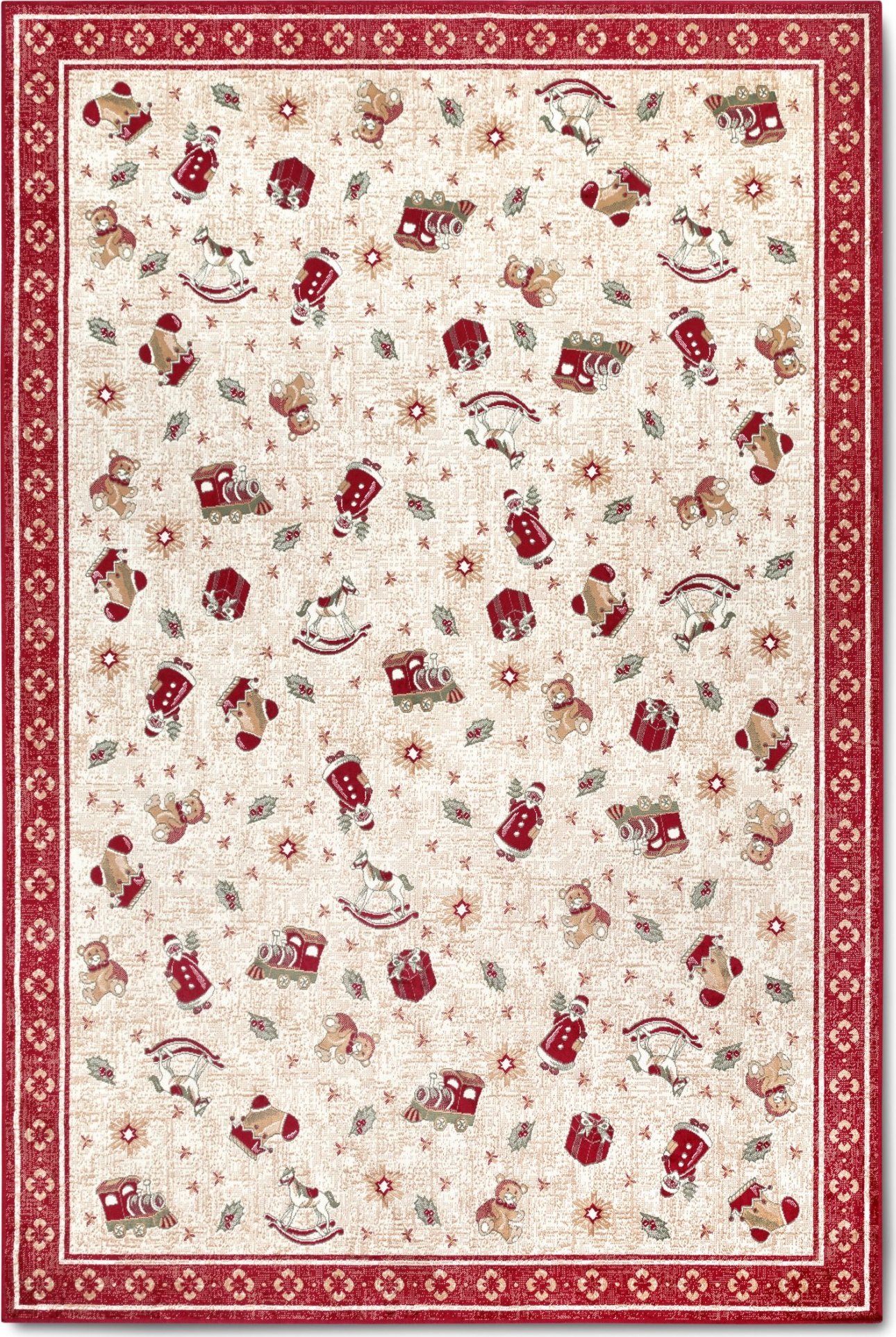 Řada koberců Villeroy & Boch Toy's Delight přináší do interiérů kouzlo Vánoc s nádechem nostalgie. Tyto koberce jsou zdobeny tradičními vánočními motivy, které vnesou do každého prostoru slavnostní atmosféru. Vyrábějí se z kvalitního materiálu, díky čemuž jsou nejen odolné, ale i příjemné na dotek. Praktickou vlastností těchto koberců je protiskluzová rubová strana, která zajišťuje, že lépe drží na svém místě, a to i na hladkých površích. Jsou také ideální pro domácnosti s robotickými vysavači a vhodné pro vytápěné podlahy. Díky své nízké výšce po nich mohou snadno jezdit i kolečkové židle, což z nich činí skvělou volbu pro pracovní prostory. Okraje koberců jsou po celém obvodu pečlivě obšité, což zvyšuje jejich trvanlivost a dodává jim elegantní vzhled. V neposlední řadě mají certifikát Oeko-Tex, který garantuje, že neobsahují žádné škodlivé látky.