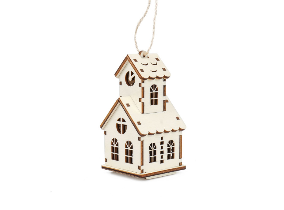 V jednoduchosti je krása! A tak vznikla tato 3D dřevěná miniatura kostelíka s věžičkou. Jeho obloukové okna i dveře jsou identická s tradičním kostelem. Věžička je navíc ozdobená hodinami, tak jako jsme zvyklí u každé kostelní věže a samozřejmě na čele kostela nesmí chybět kříž jako symbol křesťanství. Domeček slouží jako dřevěná dekorace na zavěsení anebo na položení na poličku či stůl. Dodává se už postavený, tak jak ho vidíte na obrázku. Součástí je i LED svíčka, ve které je vyměnitelná 3V baterie.