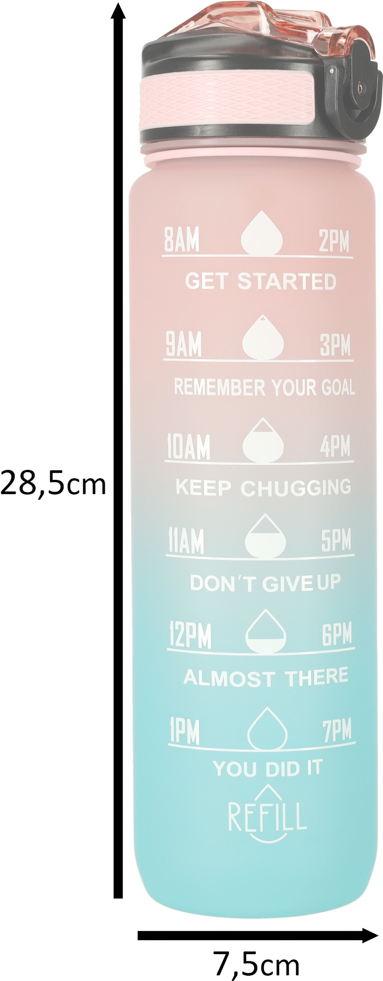 Získejte potřebnou motivaci pro nový den a současně dodržujte pitný režim. Bez ohledu na to, zda máte náročné zaměstnání nebo pravidelně cvičíte, je důležité udržovat správnou hydrataci. K tomu vám může pomoci tato láhev s inspirativními nápisy. Motivační citáty na láhvi vás povzbudí k tomu, abyste vypili celou láhev s vodou nebo jiným nápojem až do poslední kapky. Na láhvi najdete časy, kdy byste měli mít již určitou část vypitou, spolu s pěkným motivačním heslem. Láhev je vyrobena z kvalitního tritanu vhodná pro tekutiny o maximální teplotě 94°C.