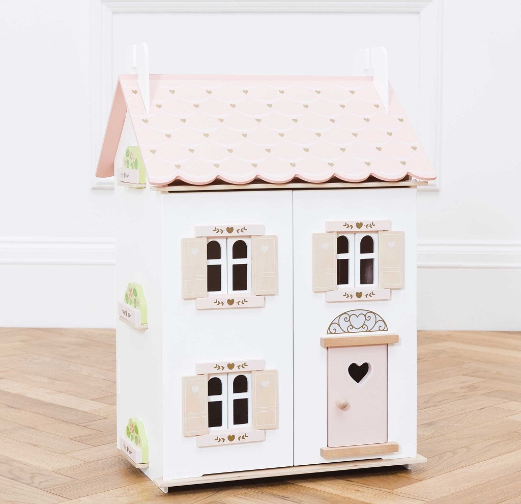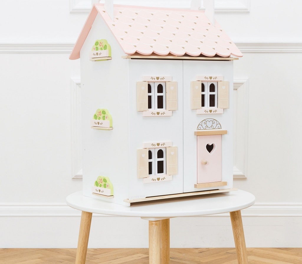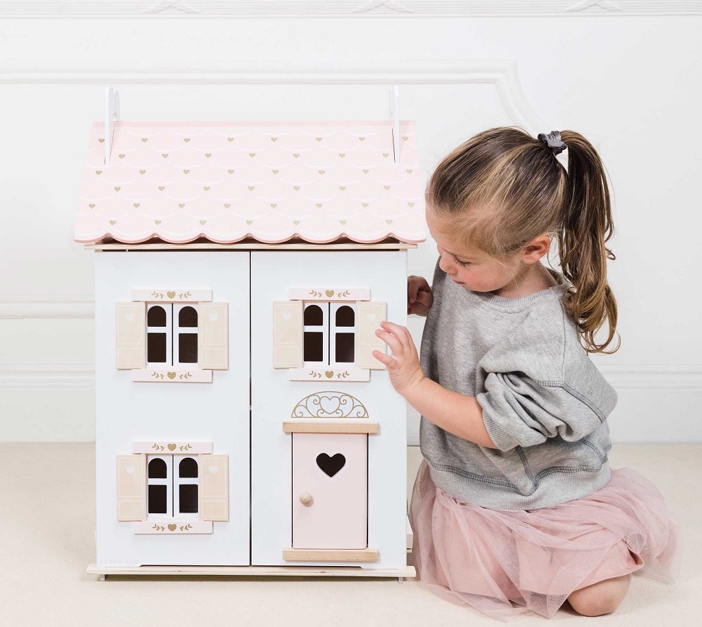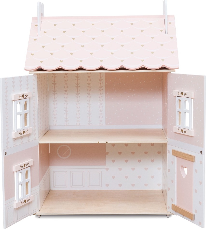 Vítejte v domečku Rose Heart! Tento rozkošný domeček na hraní, který je kompletně vymalovaný a vyzdobený v pastelových odstínech jemné růžové a bílé, se rozkládá na třech podlažích a čeká jen na to, až ho objevíte. Realistická hračka s dřevěnými otevíracími okny a okenicemi a roztomilými vstupními dveřmi je připravena na mnoho hodin zábavy. Uvnitř mohou děti prozkoumávat každou místnost vyzdobenou tradičními tapetami a milými ilustracemi, které vytvářejí skutečnou domácí atmosféru. Otevřete střechu a odhalte půdní prostor - ideální pro nový přírůstek do rodiny. Tento domeček pro panenky Blue Belle je vyroben ze dřeva s certifikátem FSC® (dřevo z lesů obhospodařovaných udržitelným způsobem) a je zdoben barvami na vodní bázi bezpečnými pro děti.