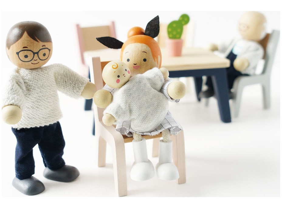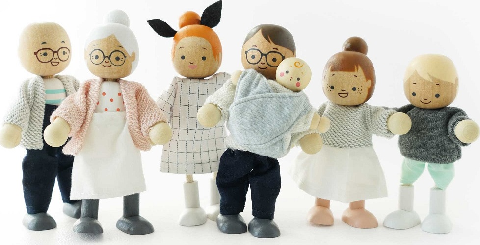 Šťastná rodina! Tato sada sedmi dřevěných panenek je připravena a čeká na rodinná dobrodružství. Postavičky jsou oblečeny do krásných, ručně šitých outfitů. Jejich velikost je přizpůsobena pro všechny domečky a produkty značky Le Toy Van. Ideální hračka pro vzdělávání a inspiraci, která podporuje sociální hru a zdokonaluje jemné motorické dovednosti. Produkt se může lišit v barevných detailech.