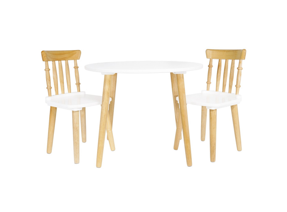 Okouzlující set dětského stolu s židlemi se bude vyjímat v každé herně či dětském pokoji. Perfektní místo pro tvoření, čtení, jedení nebo jiné zábavné aktivity. Tento multifunkční set prostě musíte mít. Nadčasový design a pevné kaučukové dřevo, stoleček a židle vám vydrží opravdu dlouho. Barevná kombinace bílé barvy a přírodního dřeva, opravdu krásný dětský nábytek, který si můžete předávat z generace na generaci.
