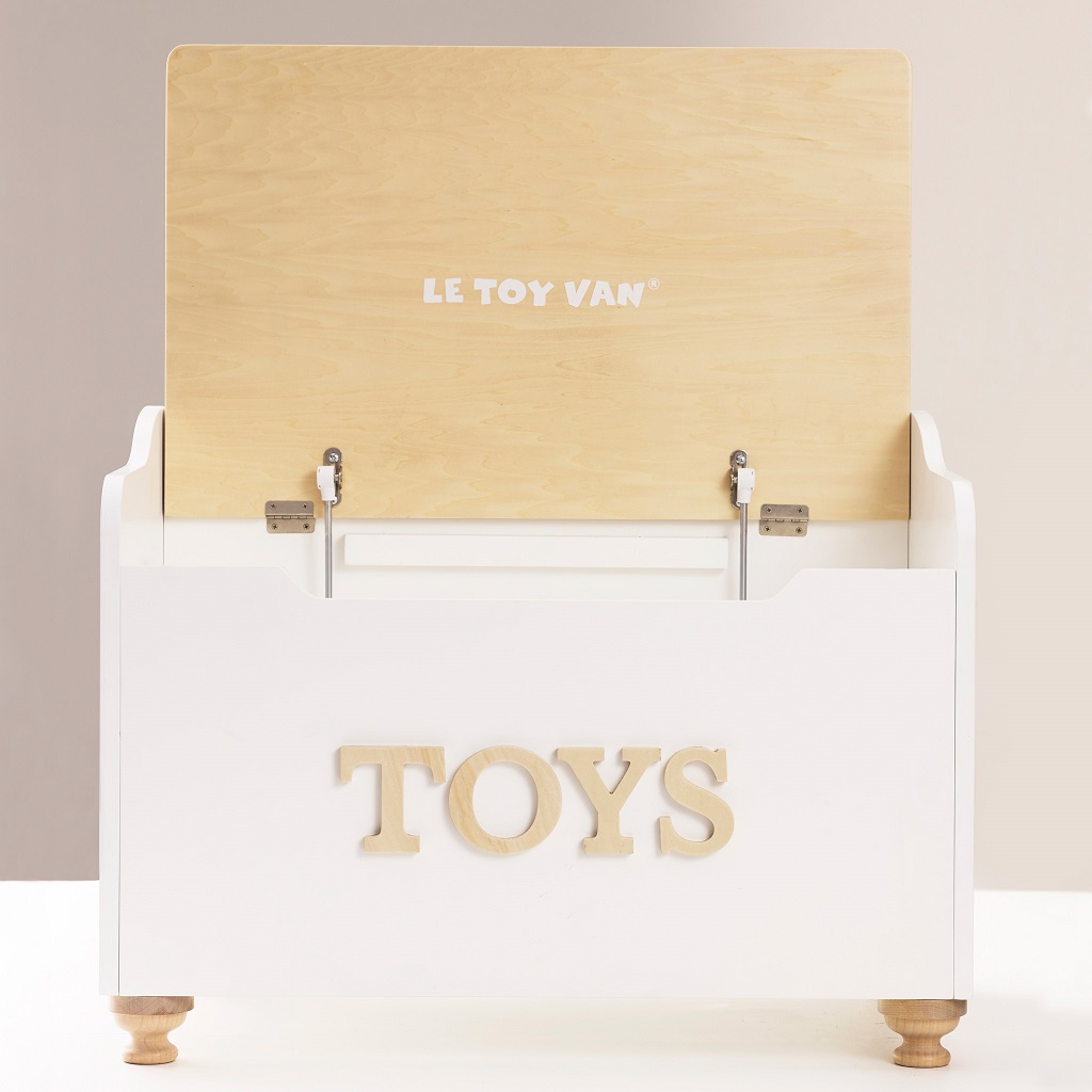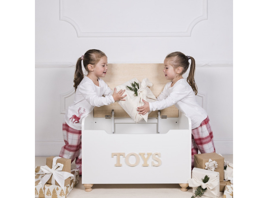 Okouzlující a ručně vyrobená dřevěná truhla na hračky, do které si děti mohou uložit všechny své hračky a poklady. Tento produkt je univerzální, využijete jej nejen jako elegantní úložný prostor, ale také jako lavici na sezení pro děti! Truhla má pomalu se zavírající panty, dřevěné nohy, reliéfní nápis. Neutrální design kombinuje klasickou bílou a přírodní dřevo. Krásný kus nábytku, který překoná i zkoušku času. Vyrobeno z udržitelného a odolného dřeva, vydrží vám opravdu dlouho.