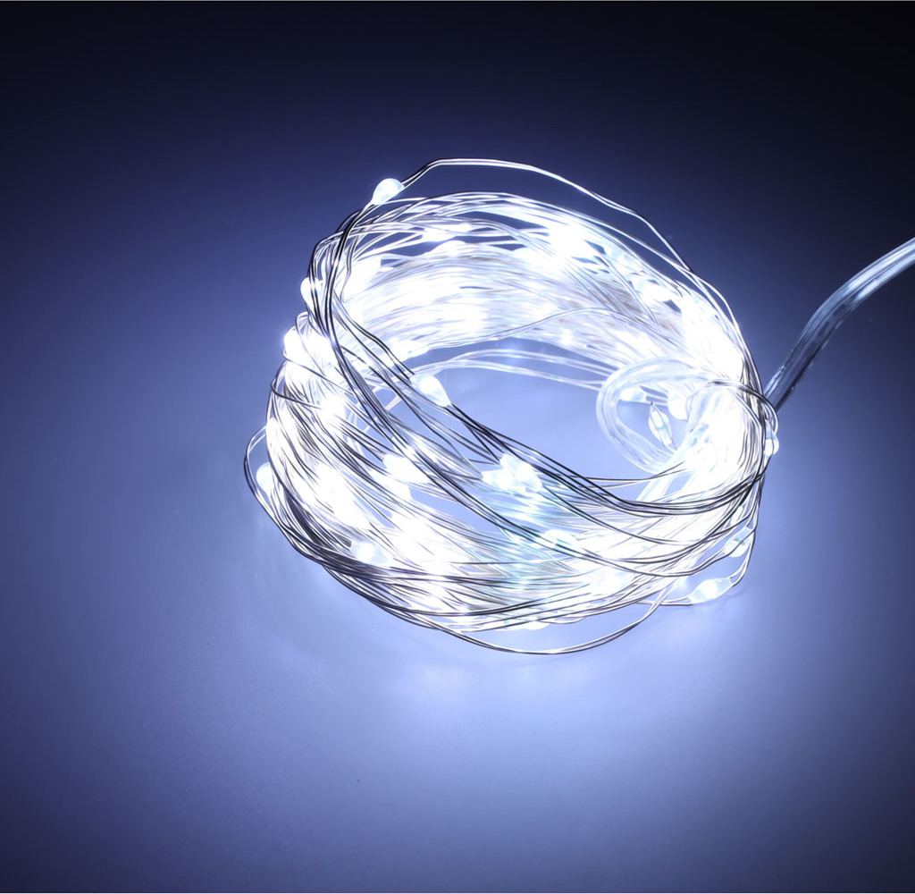 LED dekorativní osvětlení na drátku - 5m 50LED - studená bílá