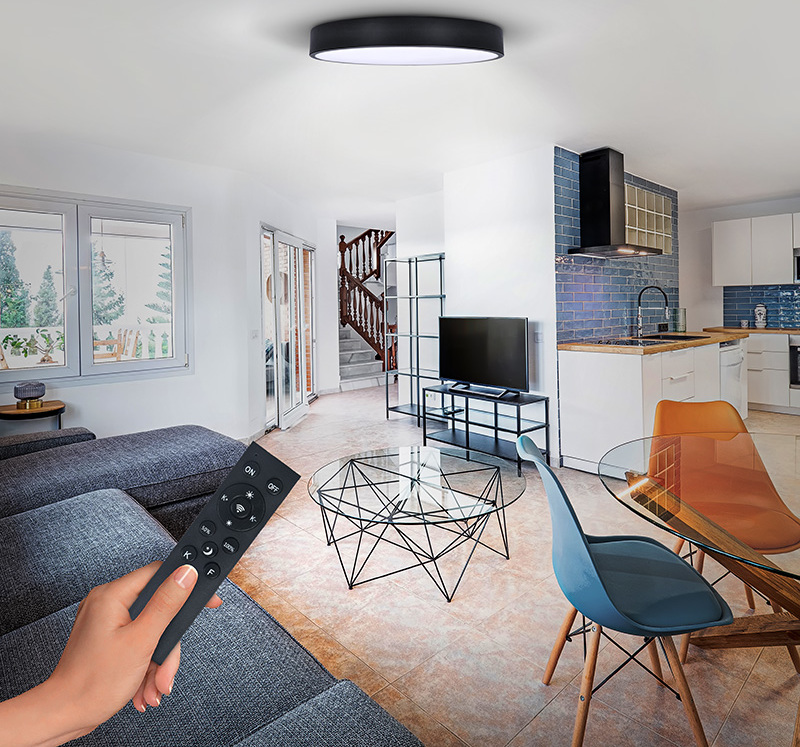- dálkovým ovladačem lze světlo plynule stmívat, měnit teplotu světla či volit mezi přednastavenými módy svícení.