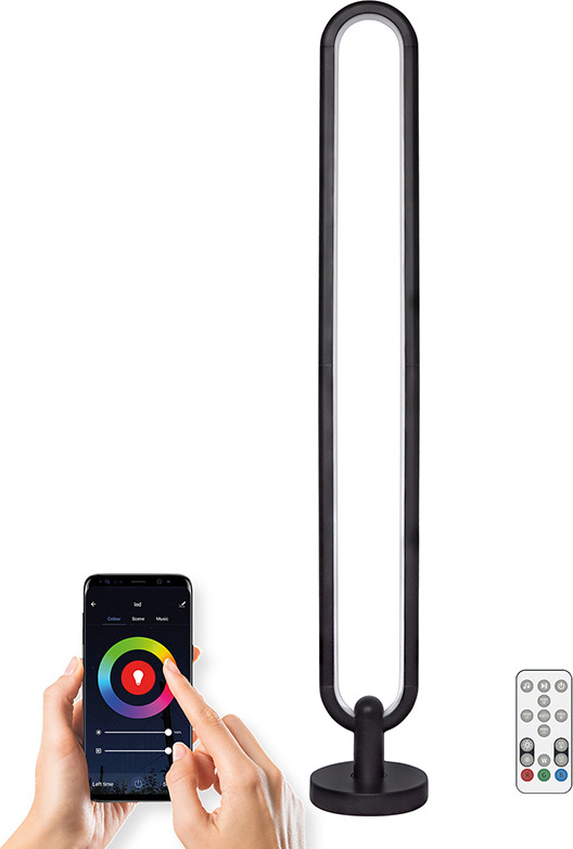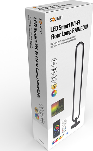 LED SMART WIFI stojací lampa je ovládaná chytrým telefonem. Podporuje Wifi 2,4GHZ, Android 4.1 a vyšší a IOS 8.0 a vyšší. Umožňuje nastavovat různé režimy svícení, barvy (RGB) a intenzitu světla. LED pásek lze ovládat i dálkovým ovladačem, který je součástí balení.
