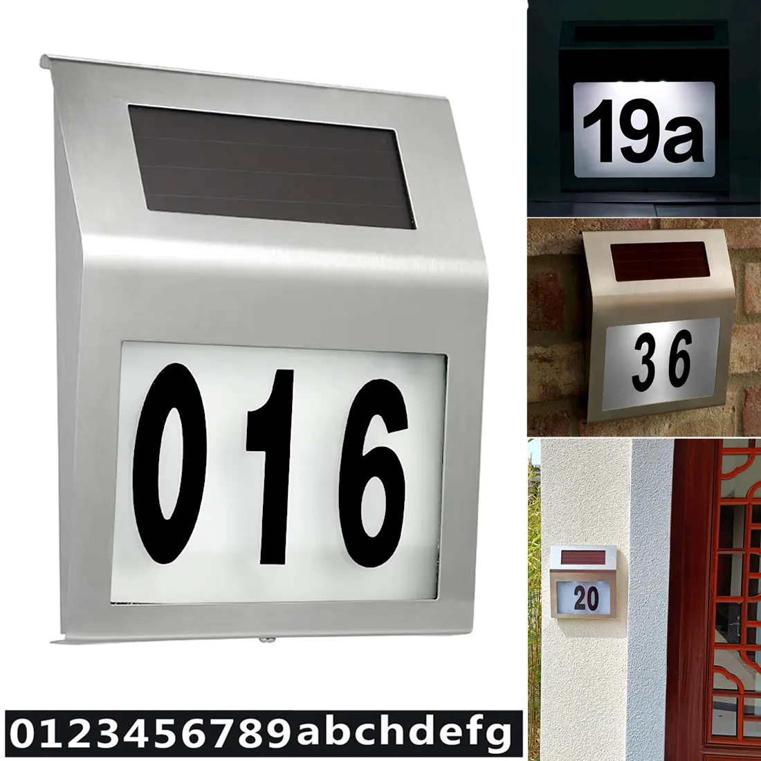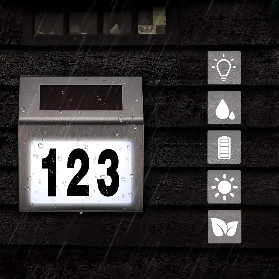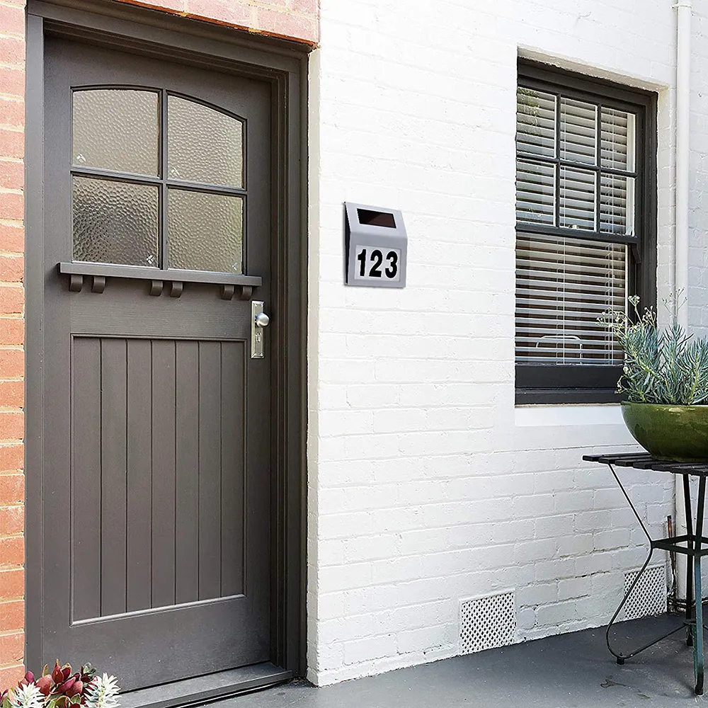 LED solární lampa s číslem domu - stříbrná