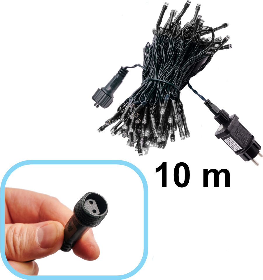 Unikátní vánoční osvětlení s velkým počtem diod (100 LED) rozzáří každý interiér a přinese vánoční kouzlo. Díky své jasné barvě vypadají LED světla krásně v každé místnosti a vytvářejí útulnou a příjemnou atmosféru za zimních večerů. Tato světla jsou ideální jako jedinečná sváteční dekorace, například k ozdobení okna nebo vánočního stromečku. Lze je ale použít i v jiných obdobích roku, zejména jako jemné, romantické osvětlení obývacího pokoje. Řetězec světel zavěšený v místnosti bude krásným akcentem, dodá atmosféru. Atmosféru v místnosti lze změnit jediným kliknutím – 8 režimů osvětlení umožňuje najít osvětlení, které vám bude nejlépe vyhovovat. Tato světla jsou napájena ze sítě a díky LED technologii řetězec spotřebovává velmi málo elektřiny. Řetěz má navíc konektor, který umožňuje propojit více řetězů dohromady.