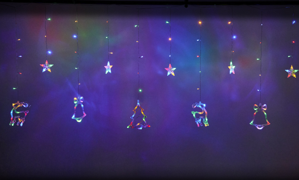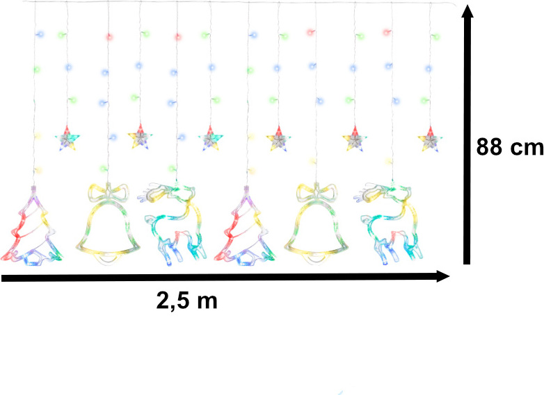 LED světelný závěs Sob, stromeček a zvoneček - 2,5 m 138LED - vícebarevné