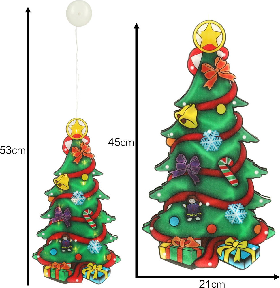Tato oboustranná vánoční dekorace ve tvaru vánočního stromečku je perfektním doplňkem pro jakékoli sváteční období. Jasné LED diody vyzařují teplou záři, která rozjasní každý zimní večer. Kompaktní velikost, provoz na baterie a uchycení na přísavku usnadňují instalaci této vánoční dekorace a eliminují potřebu elektrické zásuvky. Okouzlující design vánočního stromečku bude krásným doplňkem každého okna – jistě upoutá pozornost každého!