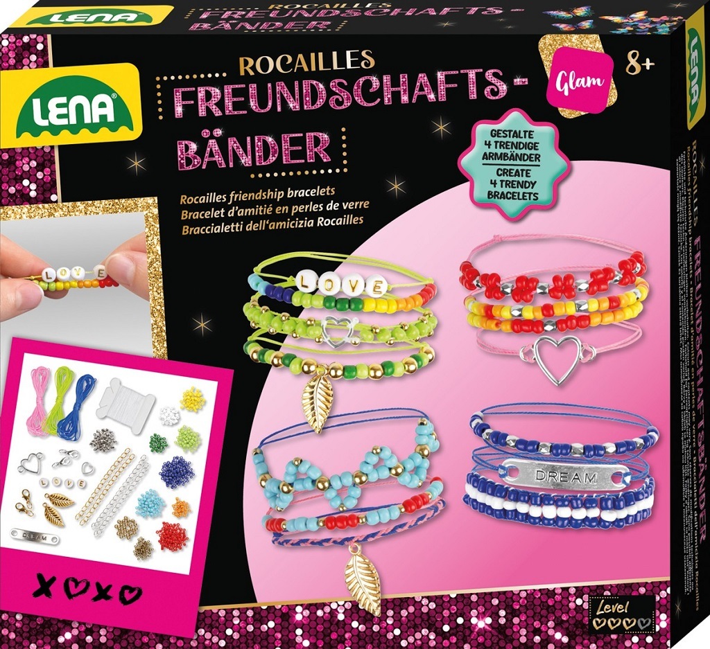 Vytvořte si vlastní originální náramky! Kreativní sada Lena Náramky přátelství Rocailles potěší všechny milovníky barev a tvoření. Děti si mohou vlastnoručně vytvořit originální šperky, které následně mohou nosit nebo darovat jako milou vzpomínku svým kamarádkám. Sada obsahuje vše potřebné k výrobě stylových náramků – od rokajlových korálků v 8 barvách přes korálky s písmenky až po metalické detaily a kovové přívěsky. Stačí zapojit fantazii a pustit se do navlékání a kombinování podle vlastního vkusu. Výsledkem jsou krásné a jedinečné doplňky, které rozzáří každé zápěstí. Skvělá sada pro děti, které si chtějí vytvořit vlastní kolekci šperků a užít si radost z tvoření.