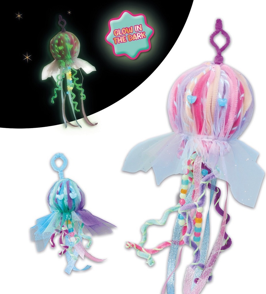 Tuto kreativní sadu pro výrobu přívěsku svítící medúzy prostě musíte mít! Vytvořte si vlastní svítící přívěsek medúzy, který září ve tmě a ozdobí batoh, klíče nebo dětský pokoj. Tato atraktivní kreativní sada pro děti obsahuje vše, co malí tvůrci potřebují k výrobě originální dekorace. Ideální a skvělá hračka na tvoření pro děti, které milují barvy, světýlka a mořský svět.V balení najdete chlupaté drátky, svítící přízi, třpytivé stuhy, jemný tylový potah a svítící korálky na ozdobu. Díky přiloženému barevnému návodu krok za krokem je výroba snadná a zvládnou ji i menší děti. Svítící medúza je nejen krásná dekorace, ale také kreativní hračka, která rozvíjí jemnou motoriku, trpělivost, fantazii a radost z vlastního tvoření.