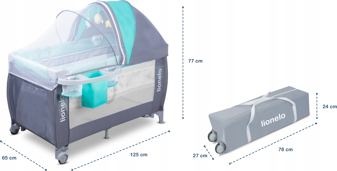 LIONELO Postýlka cestovní Sven Plus Turquoise,Grey