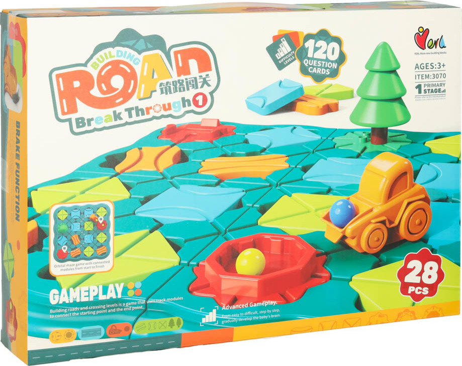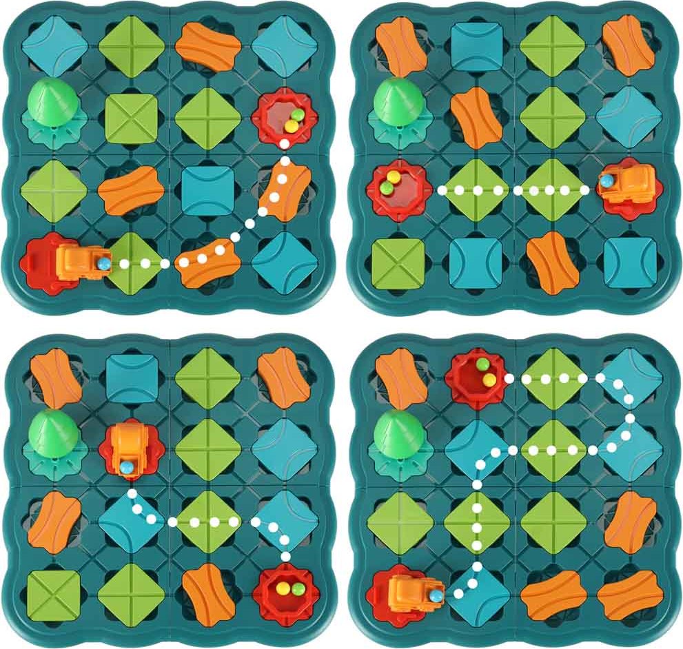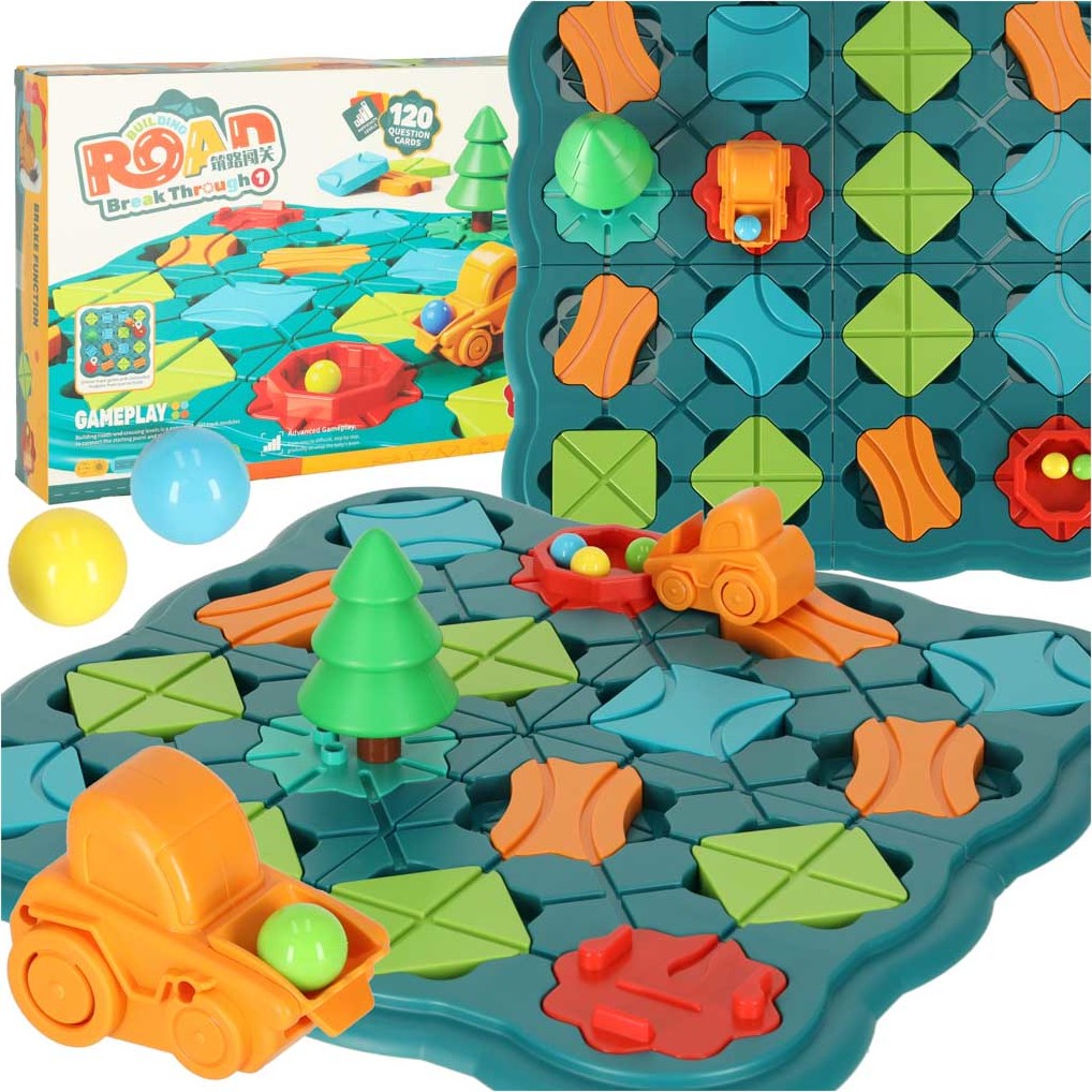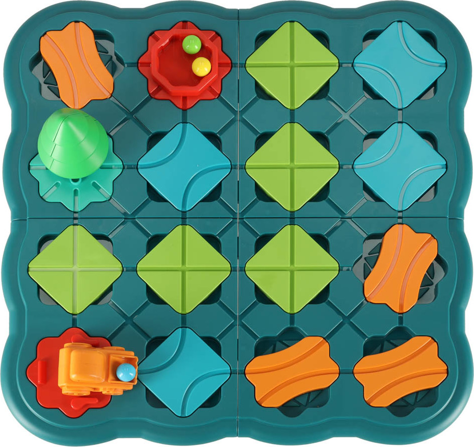 Sada obsahuje mnoho barevných dílků, které si děti mohou samy sestavit. Jejich úkolem je stavět silnice, uspořádávat zatáčky, rovné úseky a křižovatky tak, aby dráha vedla od startu do cíle. Úkolem natahovacího auta je projet předem postaveným bludištěm plným míčků a nakonec je shodit do nádoby. Je to poutavá desková hra, ale také bludiště s logickými prvky, které děti vyzývá k logickému myšlení. Díky rozmanitosti kombinací může být každé rozvržení jiné, což zajišťuje hodiny zábavy bez nudy.