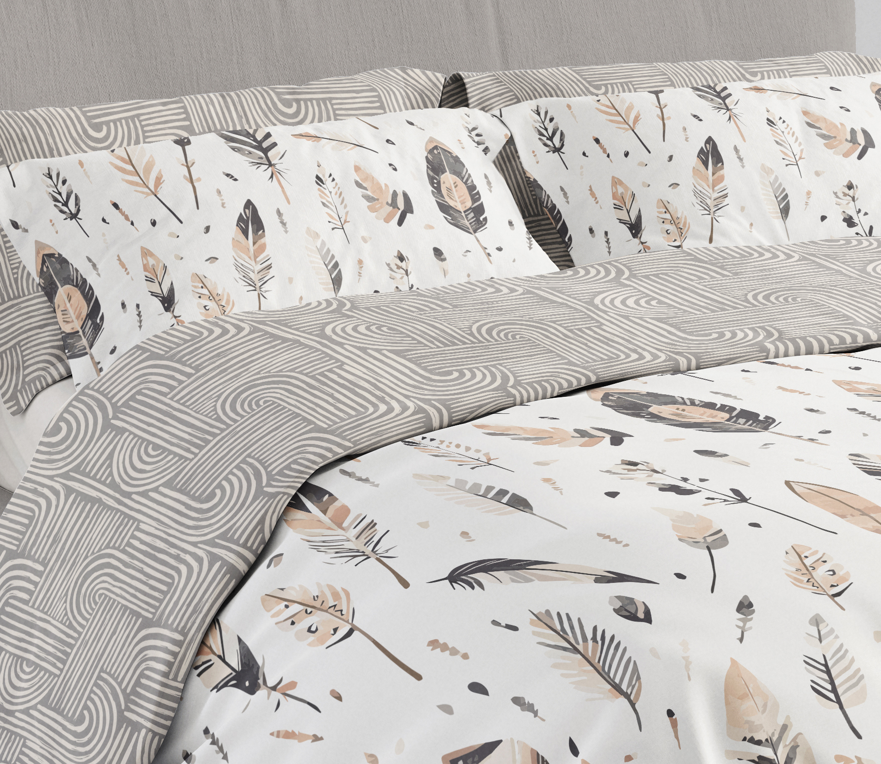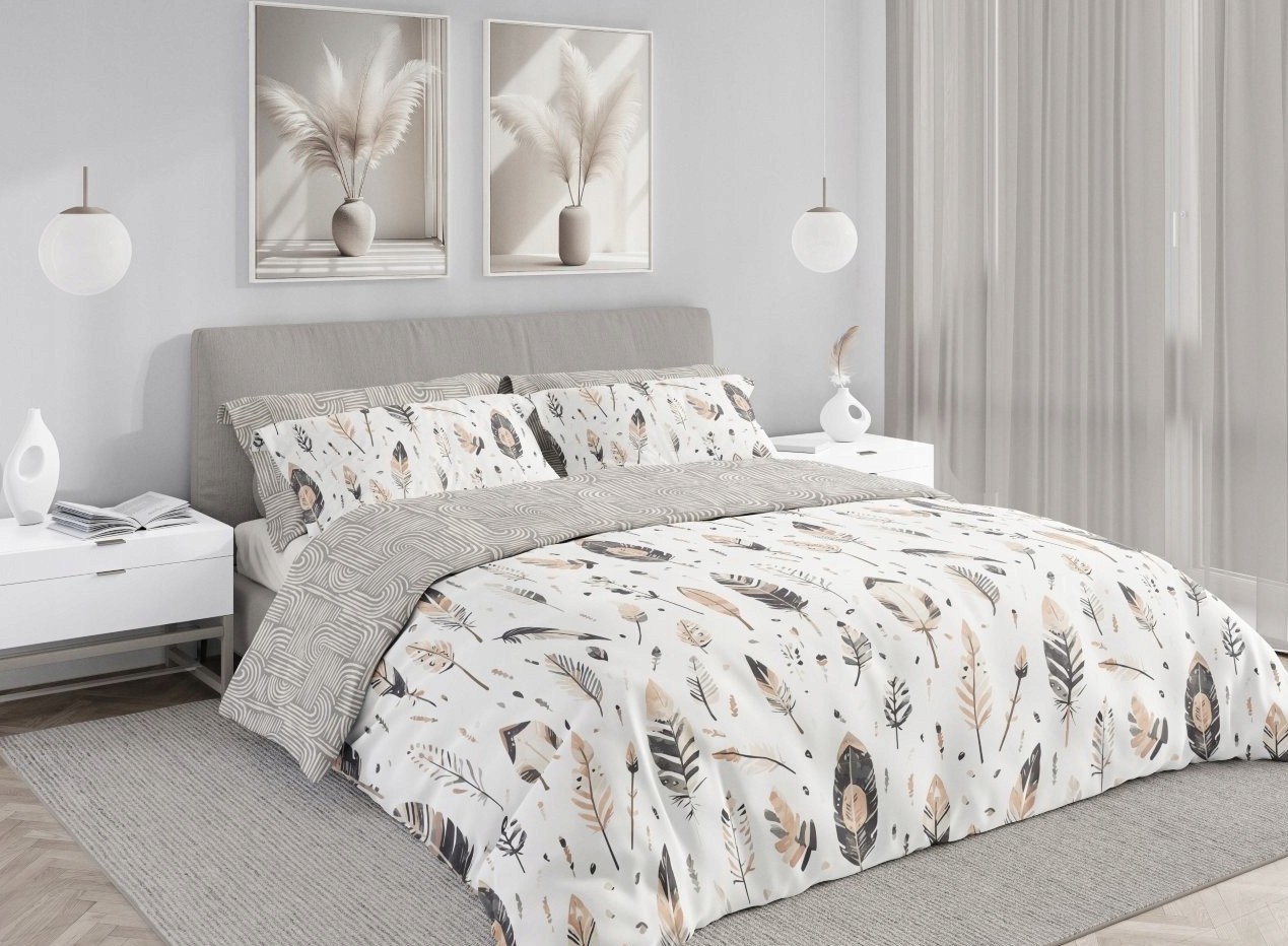 Ložní povlečení BOHO Peříčka - 160x200 cm - bavlněný satén