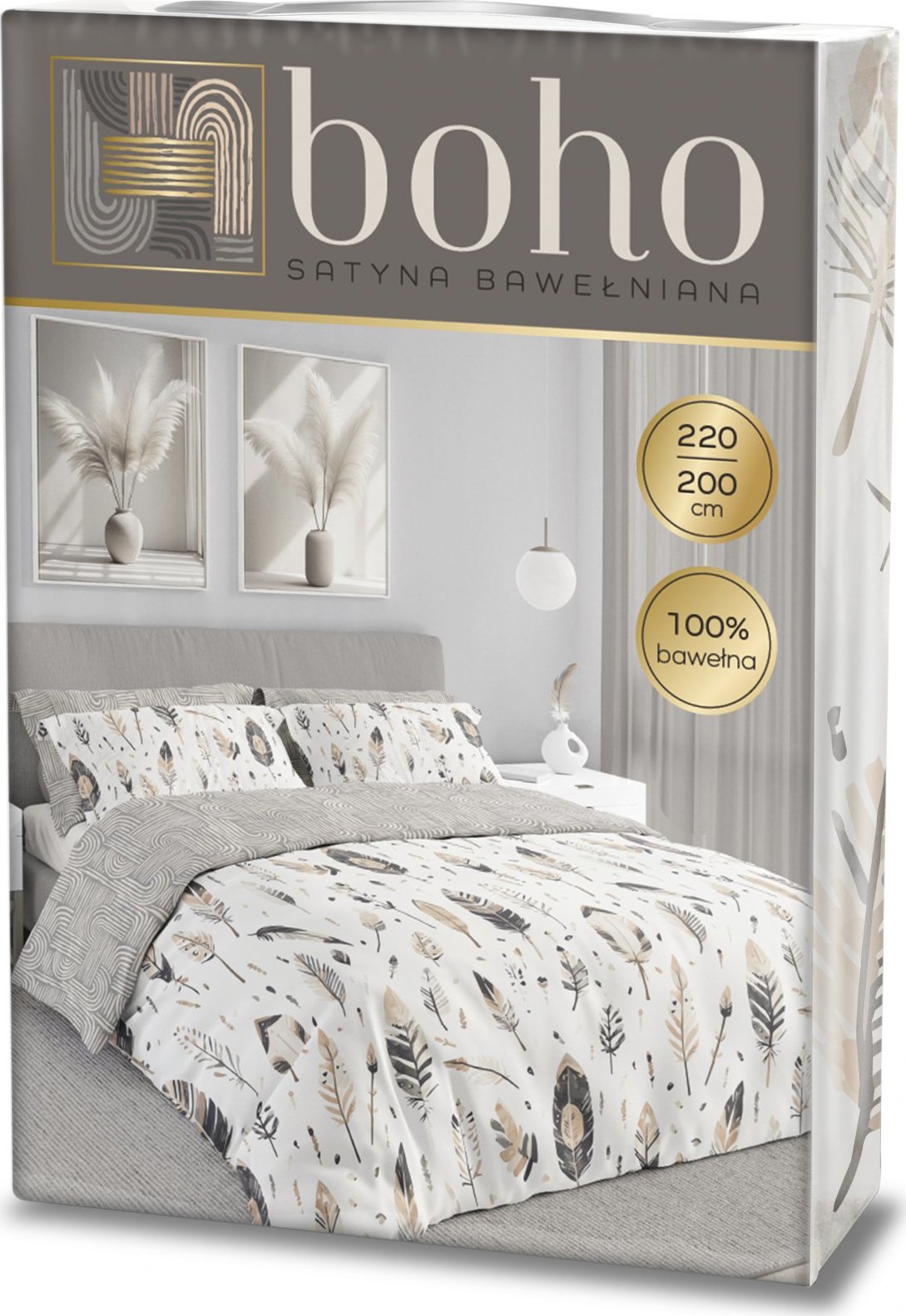 Ložní povlečení BOHO Peříčka - 220x200 cm - bavlněný satén