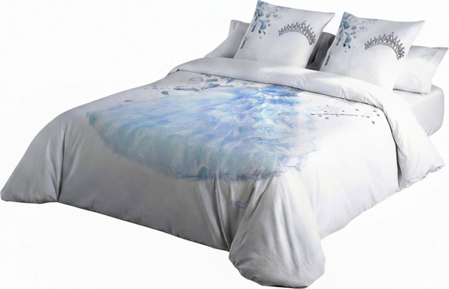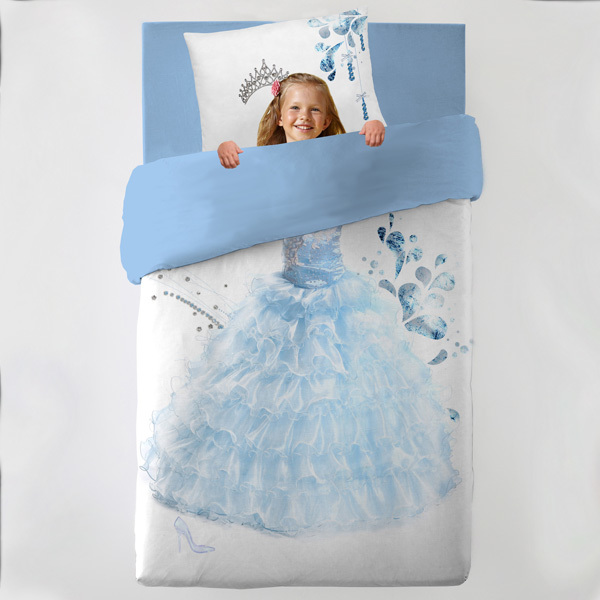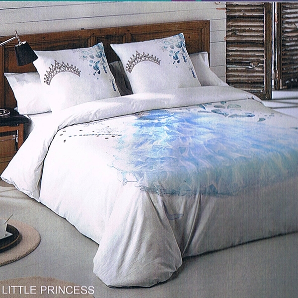 Ložní povlečení z bavlněného saténu MALÁ PRINCEZNA - světle modré/bílé - 160x200 cm