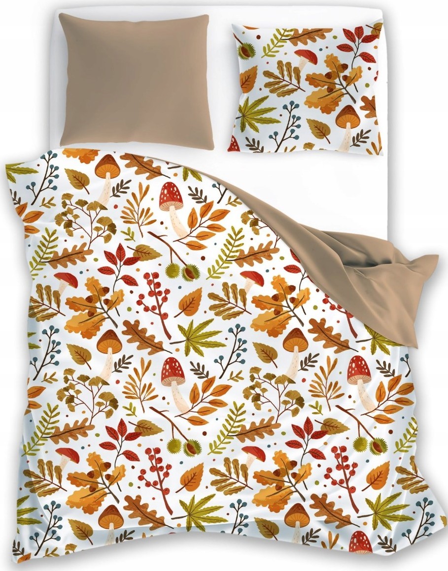 Ložní povlečení z mikrovlákna DRUK Podzim - 220x200 cm - bílé/béžové