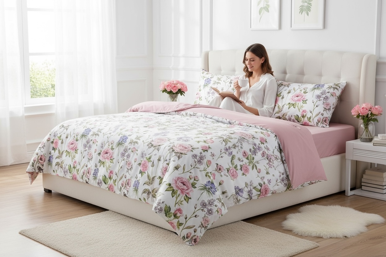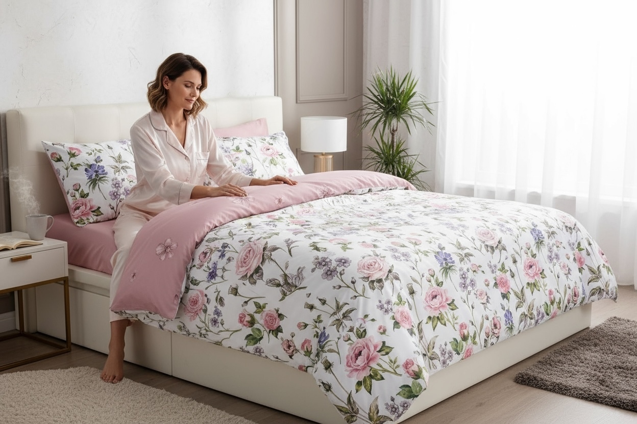 Zamilujte se do kolekce ložního prádla, která kombinuje elegantní design s pohodlím každodenního spánku. Model FLOWER DREAM je jemná sada ložního prádla vyrobená z vysoce kvalitního saténového mikrovlákna, známého pro svou měkkost, lehkost a jemný lesk. Díky příjemné struktuře látky zajišťuje pohodlný spánek a zároveň se snadno udržuje – rychle schne, je nemačkavý a obvykle nevyžaduje žehlení. Jemný vzor FLOWER DREAM se perfektně hodí do moderního i klasického designu ložnic a vytváří atmosféru relaxace a elegance.