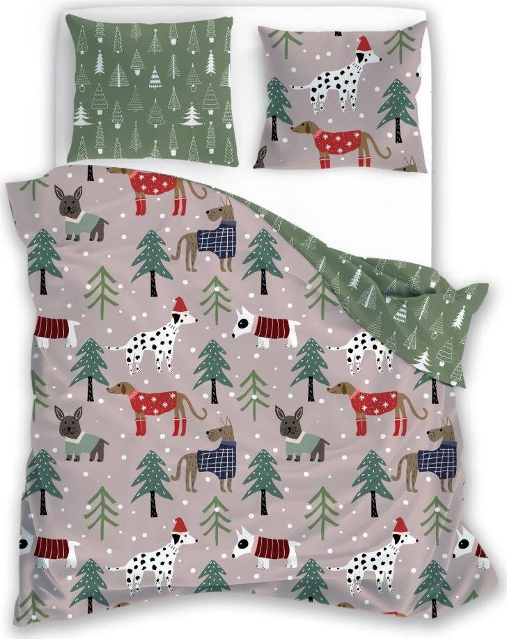 Ložní povlečení z mikrovlákna HOLLY JOLLY Pejsci v lese - hnědé/zelené - 160x200 cm