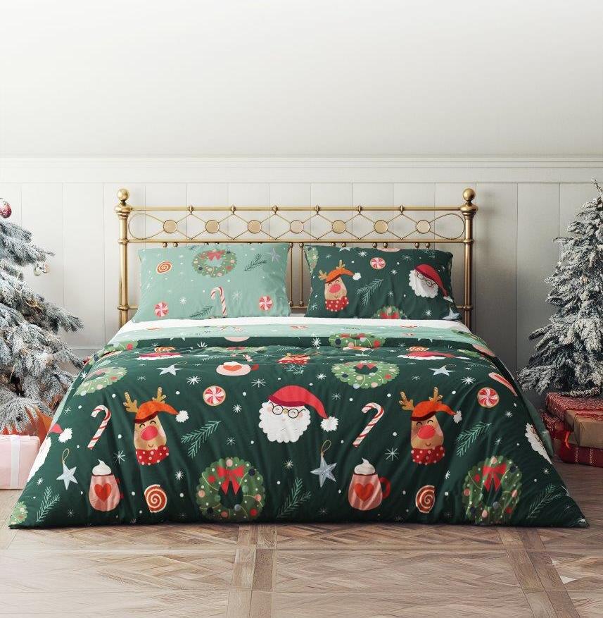 Ložní povlečení z mikrovlákna HOLLY JOLLY Vánoce - zelené - 220x200 cm