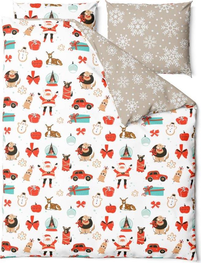 Ložní povlečení z mikrovlákna HOLLY JOLLY Vánoční motivy - bílé/béžové - 220x200 cm
