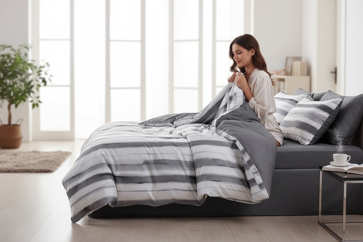 - Moderní tkanina ze saténového mikrovlákna – jemný lesk a elegantní vzhled,