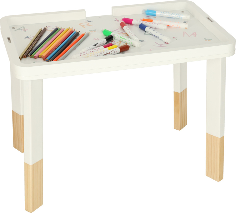 Stůl lze přeměnit na učební stanici pro psaní, kreslení a další kreativní činnosti.