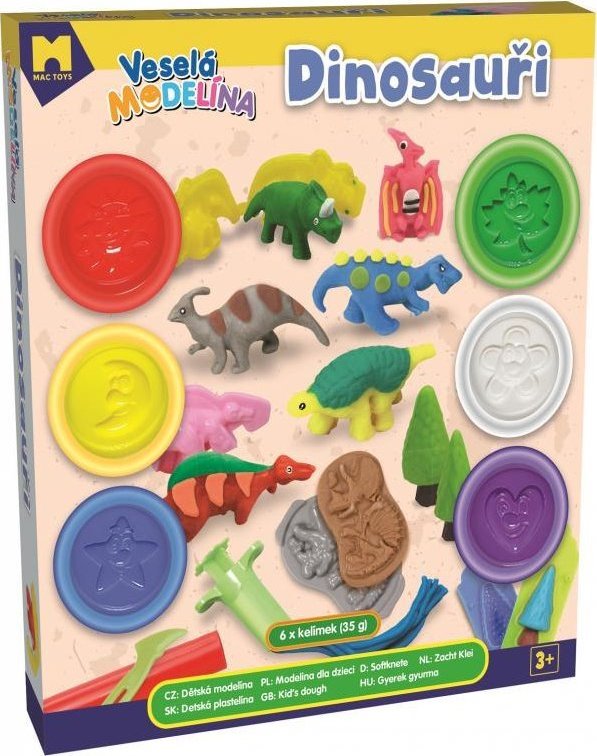 Sada je barevně i tématicky laděna do světa dinosaurů. modelína je lehce tvarovatelná a nevysychá balení obsahuje: 6x kelímků modelíny (každý po 35g), 8 tvořítek na dinosaury, 1 tvořítko na fosilie, 2 tvořítka na stromy, nožík a další příslušenství po každé hře modelínu ulož zpět do kelímku, aby zůstala tvárná na další tvoření a neztvrdlaVlastnosti