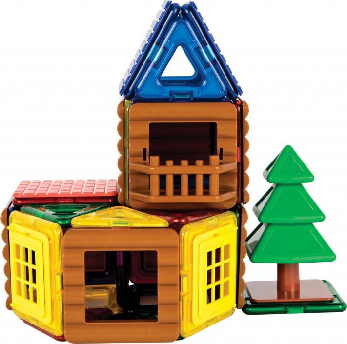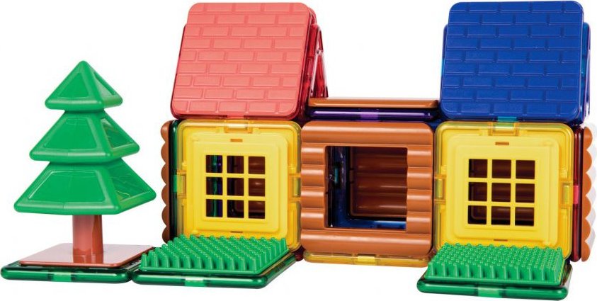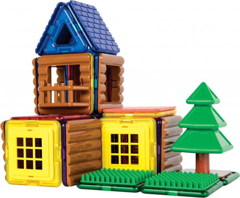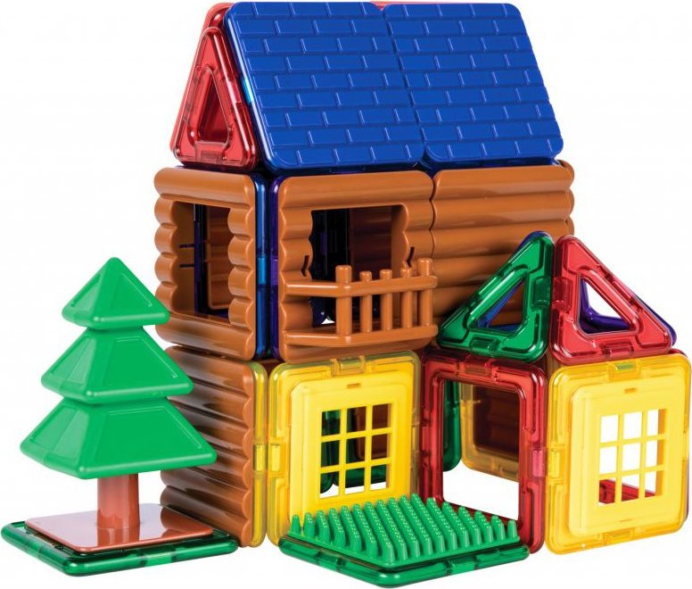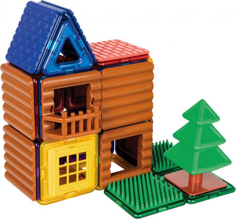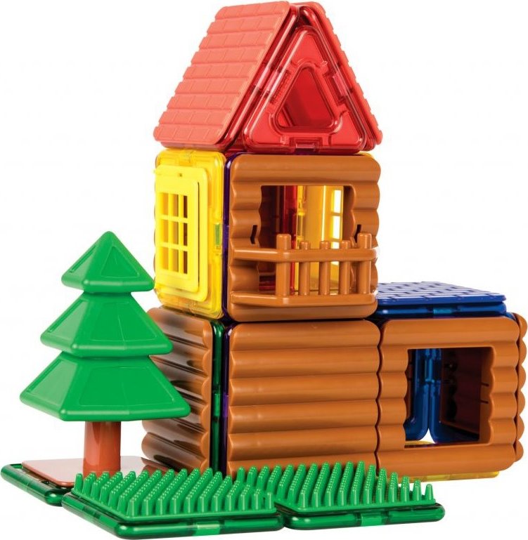 Magformers "Lesní srub" je skvělě navržená sada obsahující 87 dílků. Vynikající dárek pro každého architekta a milovníka přírody, oblíbený zejména u chlapců. Je vybaven speciálními zacvakávacími doplňky pro stavění rozmanitých roubených objektů vč. hospodářských a rekreačních budov. Pro oživení okolí stavby lze navrhnout i vlastní travnatou plochu s jehličnatými stromy. Sada obsahuje 20 čtverců, 8 trojúhelníků, 4 střešních panelů, 1 strom, 8 dřevěných výplní, 2 okna dělená, 1 balkon, 2 travnatých výplní a 2 okna roubené. Počet dílků: 48 Kreativní magnetická stavebnice Magformers umožňuje sestavovat velké množství trojrozměrných objektů, pomocí dvourozměrných plastových mnohoúhelníků. Magformers procvičuje jemnou motoriku, podněcuje tvořivost, učí děti barvy a základní geometrické tvary. Rozměry dílků a vhodně volené tvary zajišťují maximální možnou bezpečnost hračky . Materiál, z kterého je stavebnice vyrobena splňuje nepřísnější hygienická a zdravotní kritéria. Dílky jsou dostatečně velké, nelze je spolknout a jsou prakticky nerozbitné MAGFORMERS lze velmi dobře kombinovat i se známou magnetickou stavebnicí Geomag.Vlastnosti