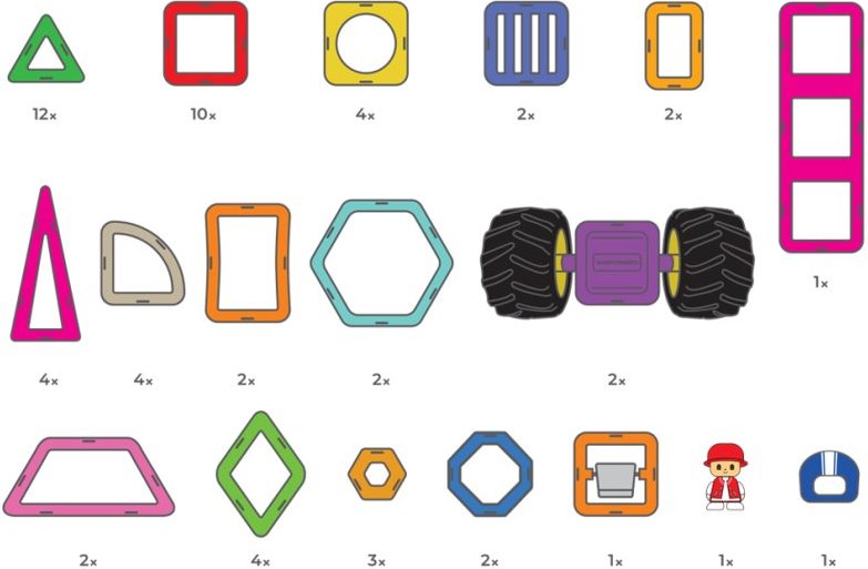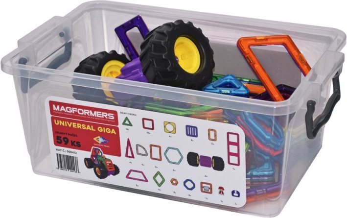 Kreativní magnetická stavebnice Magformers umožňuje sestavovat velké množství trojrozměrných objektů, pomocí dvourozměrných plastových mnohoúhelníků. Magformers procvičuje jemnou motoriku, podněcuje tvořivost, učí děti barvy a základní geometrické tvary. Rozměry dílků a vhodně volené tvary zajišťují maximální možnou bezpečnost hračky . Materiál, z kterého je stavebnice vyrobena splňuje nepřísnější hygienická a zdravotní kritéria. Dílky jsou dostatečně velké, nelze je spolknout a jsou prakticky nerozbitné MAGFORMERS lze velmi dobře kombinovat i se známou magnetickou stavebnicí Geomag.