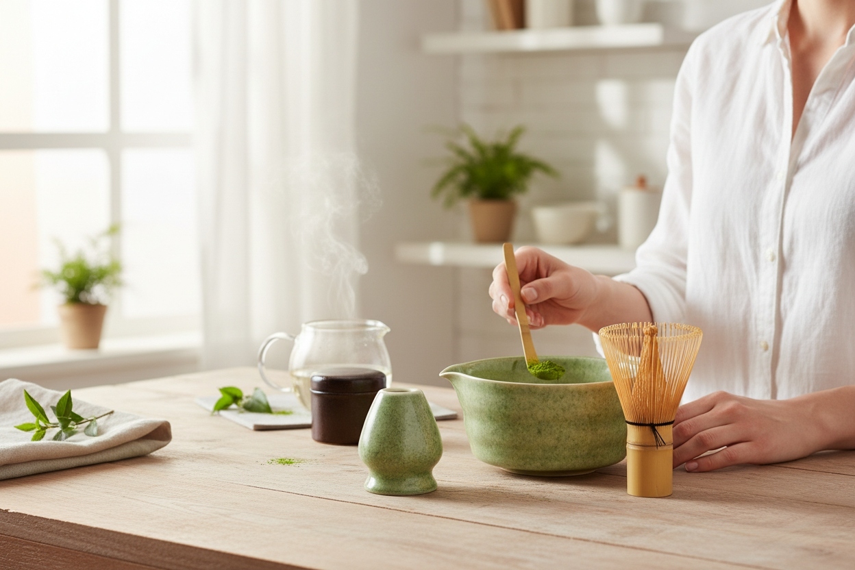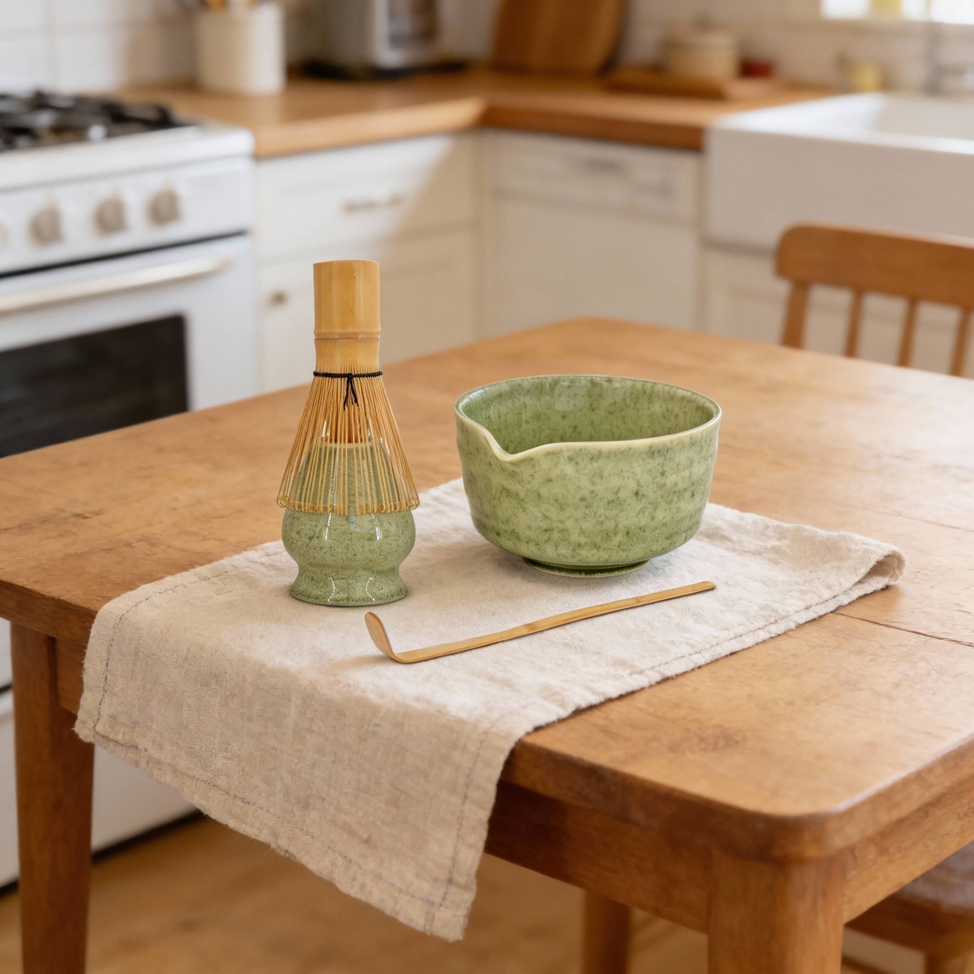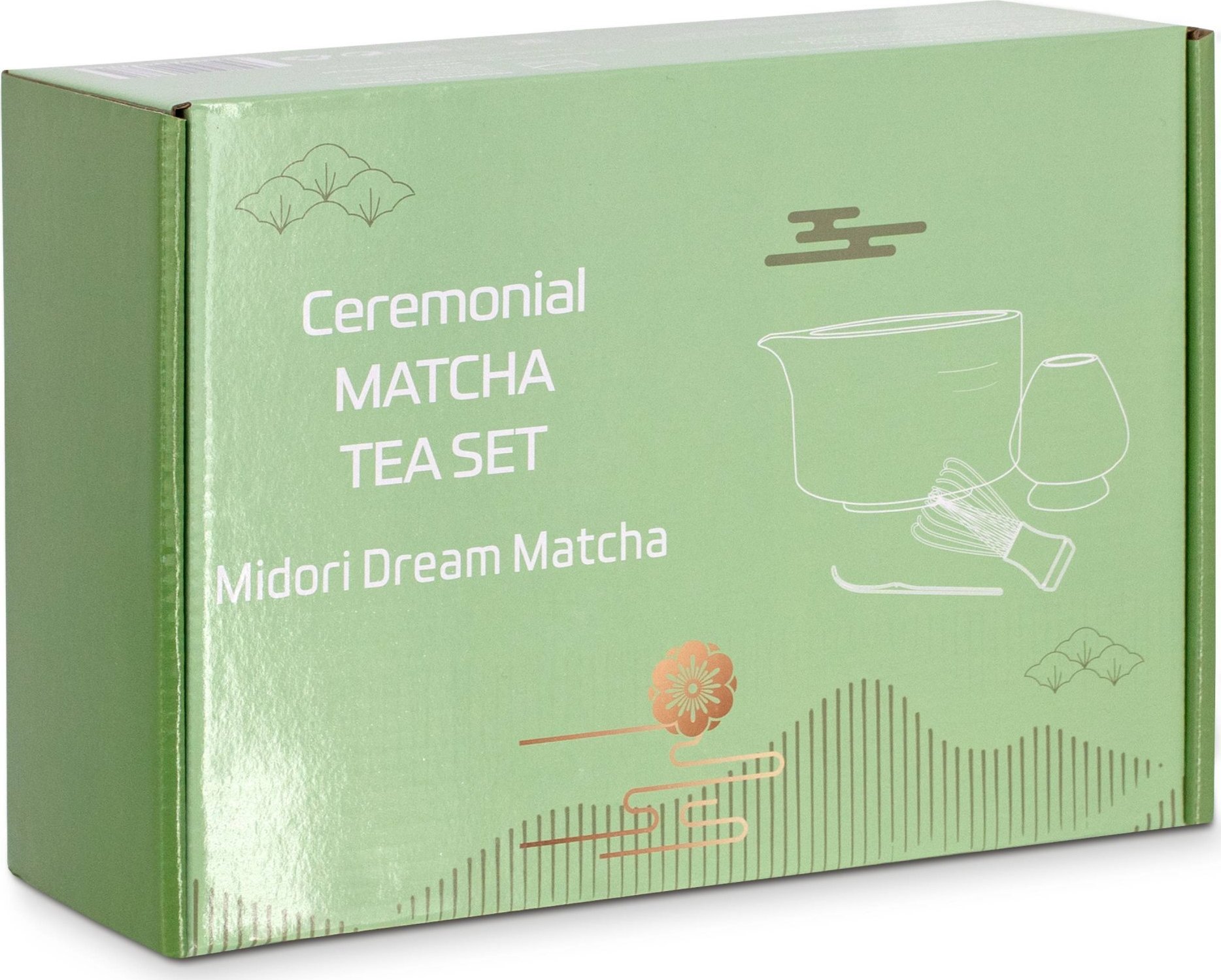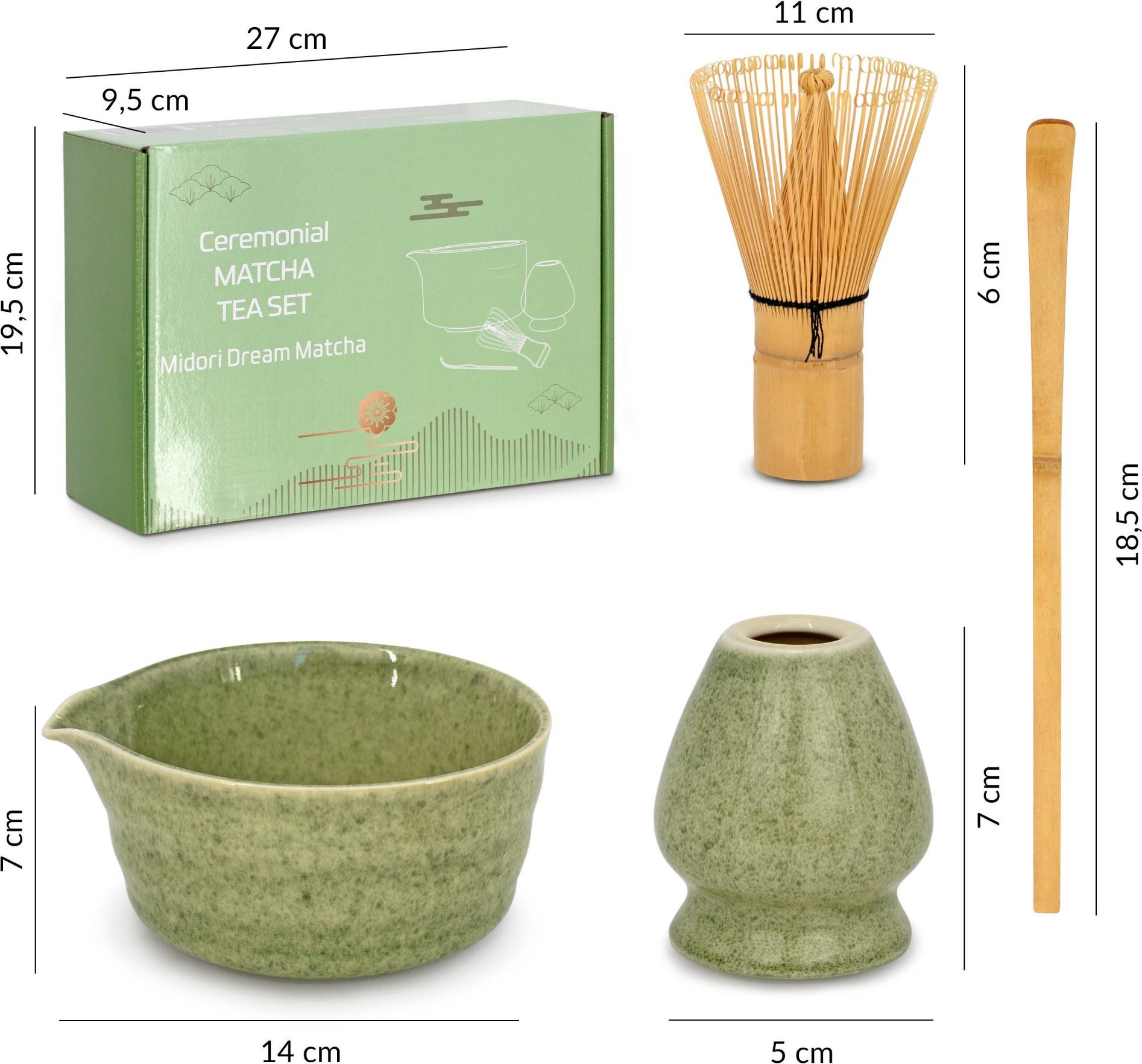 Kompletní sada pro přípravu tradičního japonského čaje matcha, určená pro začátečníky i pokročilé milovníky čaje. Sada na ceremoniální přípravu matcha Midori Dream kombinuje funkčnost, estetiku a vysoce kvalitní řemeslné zpracování, což vám umožní připravit matchu podle klasického umění čaje. Elegantní keramika v přírodním zeleném odstínu a bambusové doplňky vytvářejí harmonický celek inspirovaný japonskou filozofií míru a rovnováhy. Sada je zabalena v elegantní krabičce, ideální jako dárek.