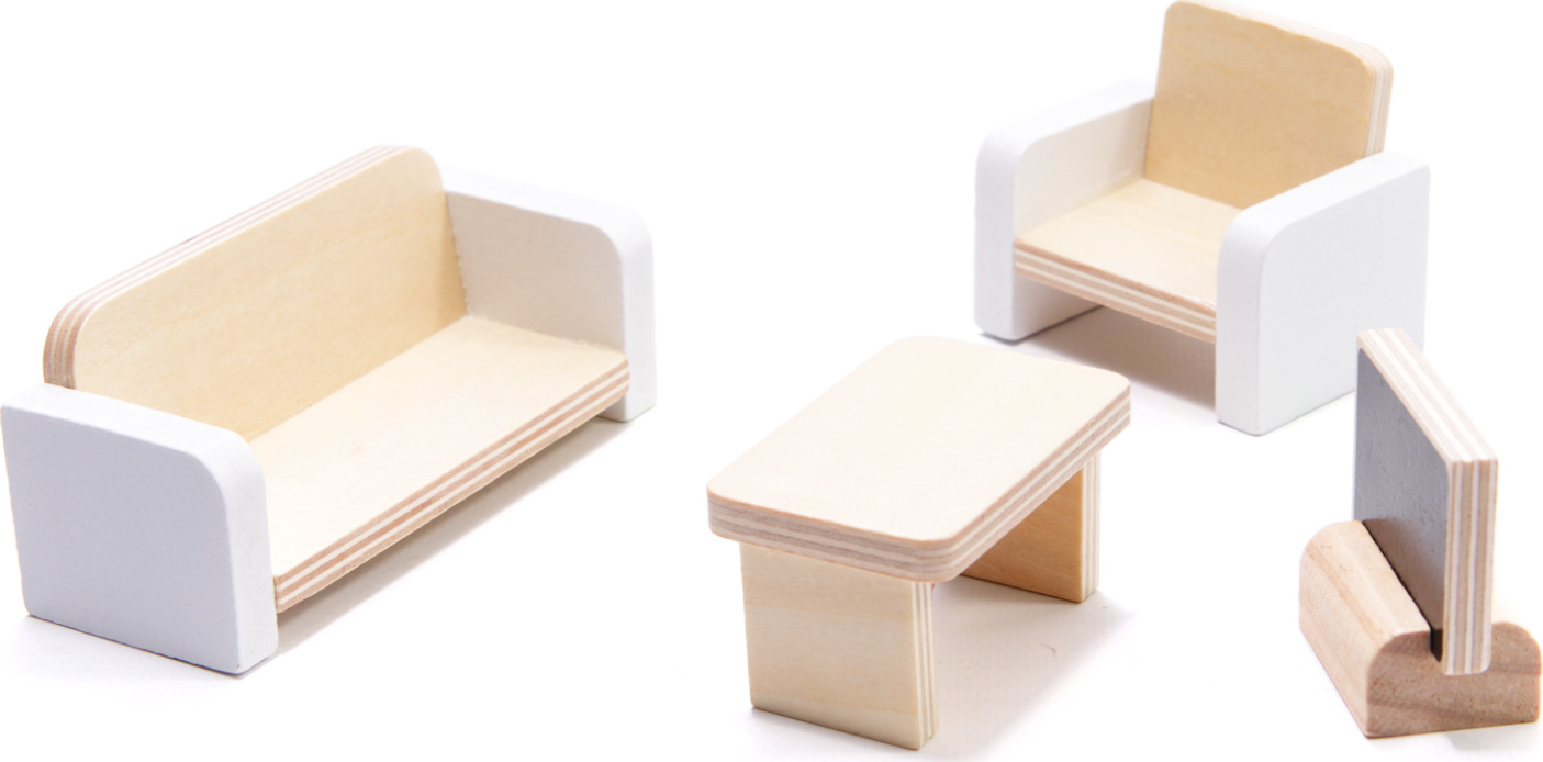 VELKÉ MNOŽSTVÍ PŘÍSLUŠENSTVÍ- dřevěný nábytek poskytuje neomezené možnosti pro hraní a uspořádání jednotlivých místností.