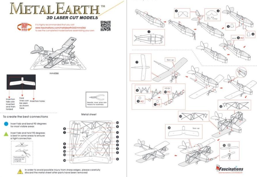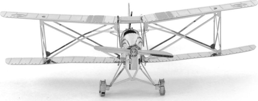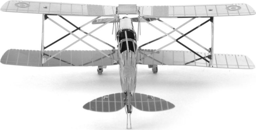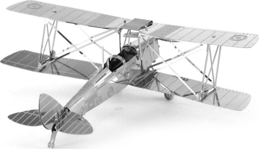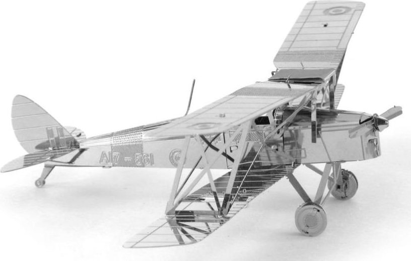 Vzrušující výzva, zážitek při skládání a oslnivý výsledek – to jsou modely METAL EARTH! Stavba 3D puzzle METAL EARTH vyžaduje trpělivost a šikovné ruce. Výsledek práce však plně vyváží vynaložené úsilí! Miniaturní repliky jsou obzvláště působivou a poutavou dekorací nejen doma, ale také v kanceláři či ve škole. Z čtvercových plátků oceli (11 x 11 cm) s částmi světových monumentů, slavných dopravních prostředků, hudebních nástrojů či zvířat Vám pod rukama vyrostou detailně propracované, fascinující modely. Autentický vzhled 3D puzzle METAL EARTH je dosažen díky detailnímu laserovému gravírování . Balení obsahuje 1 ocelový plátek s dílky a návod na složení. Nářadí není součástí balení. PRACOVNÍ POSTUP: Jednotlivé díly vyjměte z kovových plátků, v případě potřeby použijte malé štípací nůžky (nejsou součástí). Dílky se spojují k sobě pomocí zámků tvořených úchytem (zobáčkem) a otvorem. Zobáček ohněte pomocí malých tenkých kleští (nejsou součástí) a postupně spojte všechny zámky až vznikne velmi realistický mistrovský kousek! Doporučený věk: od 14 let. de Havilland Tiger Moth byl legendární britský cvičný letoun, který byl vyvinut Geoffreyem de Havillandem v roce 1931 na základě staršího cvičného letounu de Havilland D.H.60. Celkem bylo postaveno 8 811 kusů tří základních verzí a byl vyráběn licenčně i v Kanadě, Švédsku, Austrálii, Portugalsku a na Novém Zélandu. Kromě RAF byl Tiger Moth používán také armádami dalších více než třiceti zemí a jako soukromá či klubová letadla létaly Tiger Mothy doslova po celém světě. Více na Wikipedii Rozměr složeného puzzle cca 9,2 x 7,3 x 2,5 cmVlastnosti