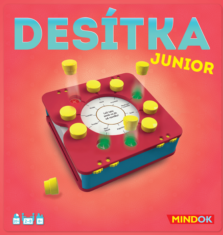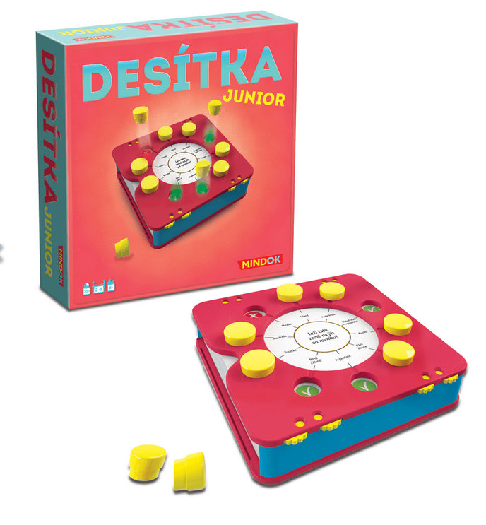 Oblíbili jste si hru Desítka? Tentokrát se k vám dostává ve verzi speciálně určené pro hraní s mladšími hráči. Hra vychází z důvěrně známých principů a lze ji hrát zcela samostatně – základní hru Desítka potřebovat nebudete. Čeká vás nová porce otázek a možných odpovědí, nové výzvy, nová porce zábavy zejména pro rodiny s dětmi. Ke každému okruhu ve hře přísluší 10 otázek a 10 možných odpovědí. Pokud odpovíte správně, získáte bod. Když jste znovu na tahu můžete hledat další správnou odpověď. V tu chvíli ovšem podstupujete riziko, že body získané dříve v tomto okruhu ztratíte. Budete hrát na jistotu, nebo riskovat? Ve hře je 200 okruhů, 2000 otázek a 2000 správných odpovědí. To vše v kompaktním balení zvaném Smartbox s počítadly bodů a žetony odpovědí. Desítka je skvělá hra, obzvláště vhodná na cesty.