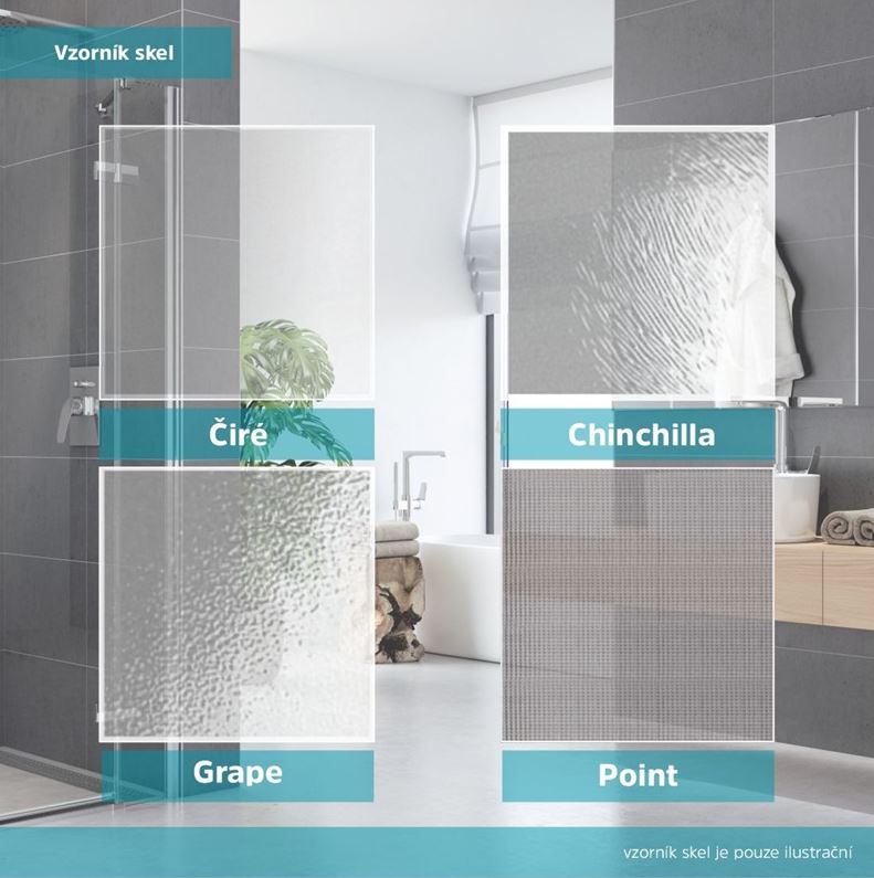 Mistica pevný díl skleněný, 100x190 cm, sklo Chinchilla 6 mm, rámový - chrom ALU
