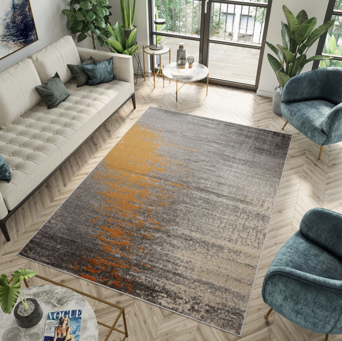 Moderní kusový koberec SPRING Aura - šedý/oranžový