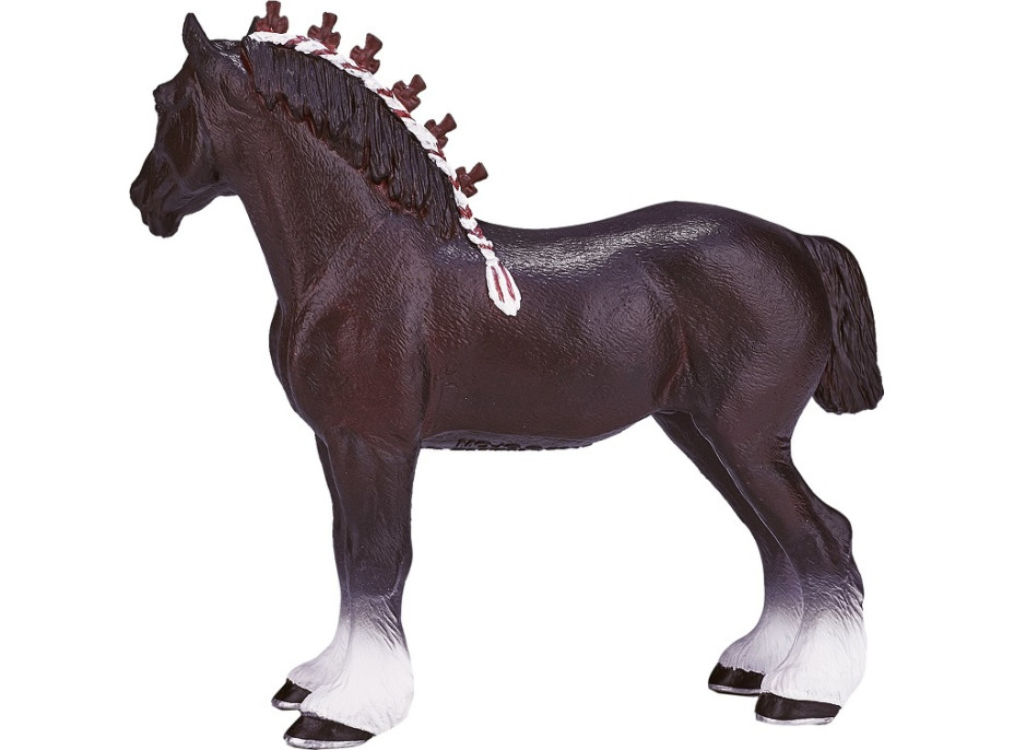 Shirský kůň je plemeno tažného koně pocházející ze střední Anglie. Hmotností se vyrovná belgickému koni, ale je obvykle o něco vyšší. Ve středověku byl hojně využíván jako válečný kůň a byl dobře uzpůsoben k nošení nadměrné hmotnosti zbroje, kterou nosil kůň i jezdec. Tato realistická figurka zvířete může dětem dopomoci poznávat skutečné vlastnosti a charakter její předlohy. Věrností a kvalitou zpracování snadno zaujme rovněž sběratele. Figurka je vyrobena z odolného a nezávadného plastu, balena a dodávána v průhledném plastovém sáčku.