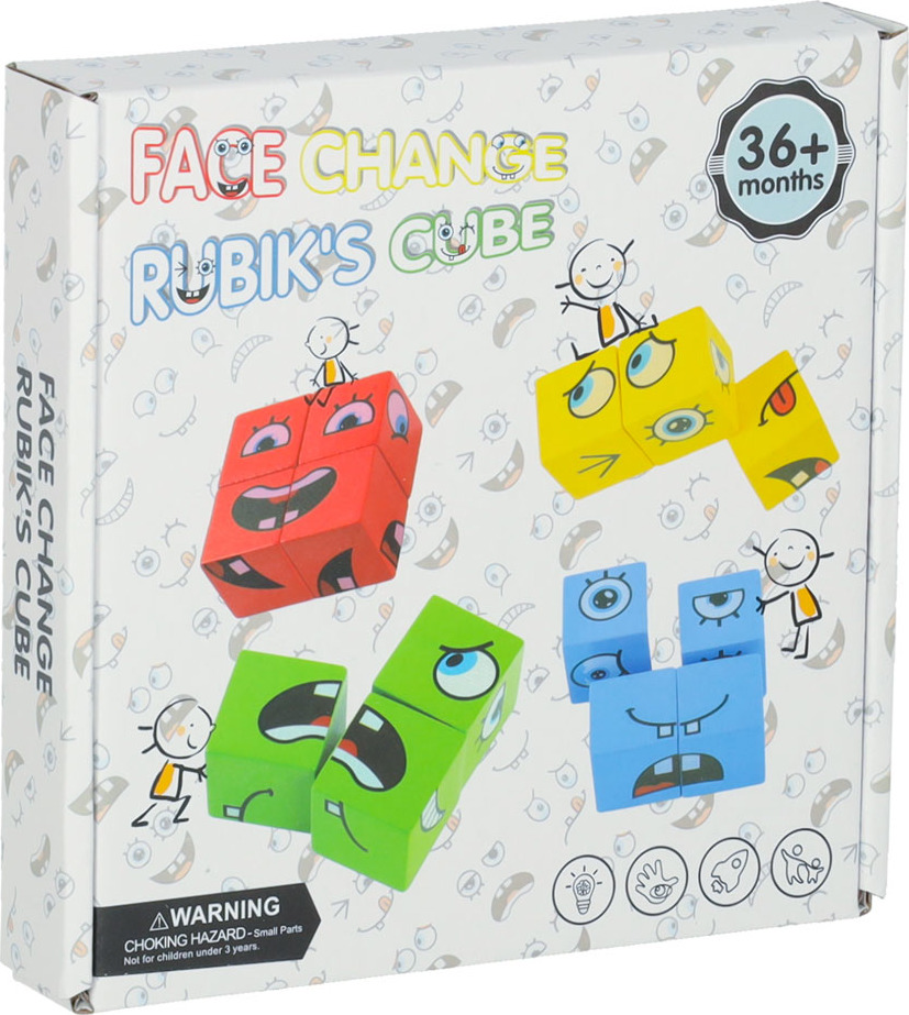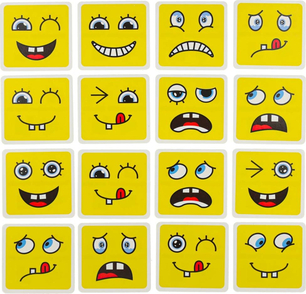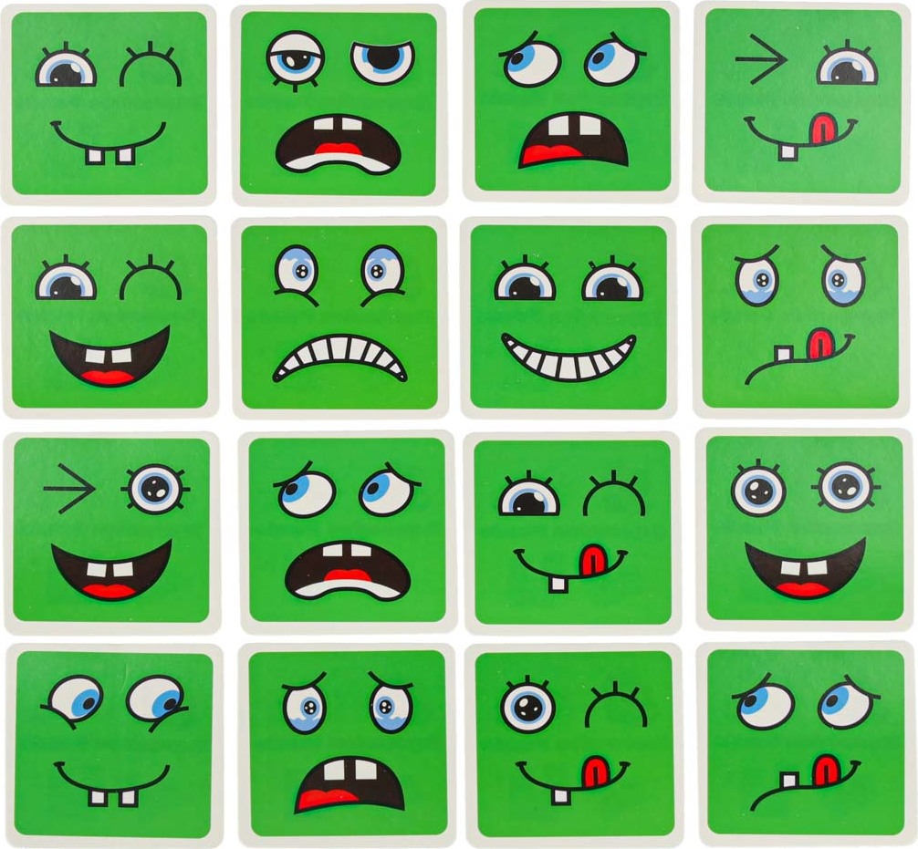 Vylosujte si jednu z karet s výrazem obličeje a co nejrychleji vytvořte zobrazený obličej pomocí kostek. Barva karet odpovídá barvě kostek. Zdá se vám úkol snadný? Buďte opatrní, nenechte se zmást vzhledem. Vyhrává ten, kdo jako první vytvoří 10 obličejů.