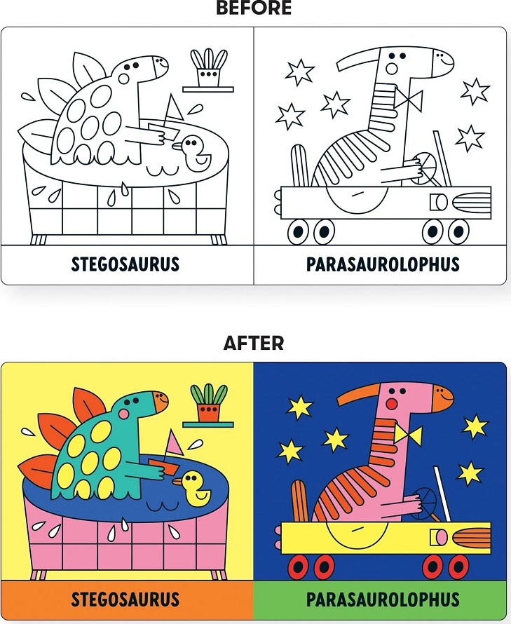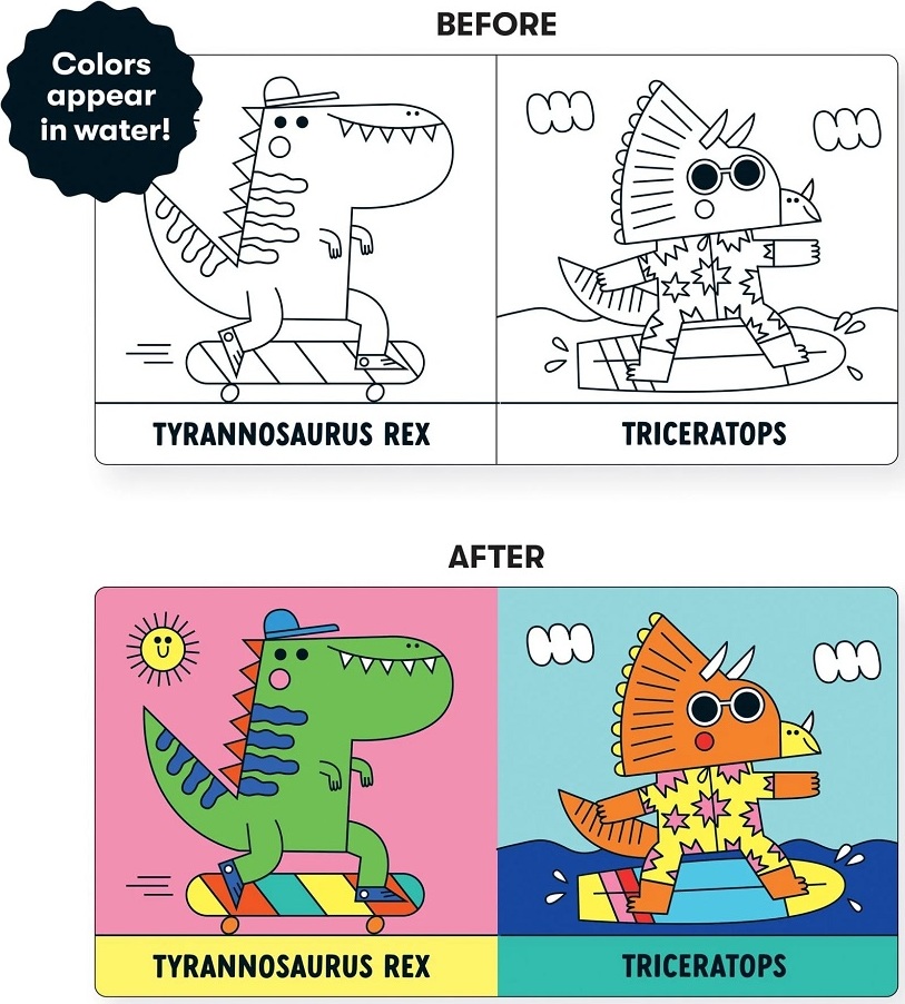 Objevte kouzlo jedinečných hraček ke koupání. Zdánlivě nenápadná obrázková knížka po namočení roztomile ožívá pestrými barvami. Roztomilí dinosauři snadno upoutají pozornost kojenců či batolat a zabaví je při koupání.