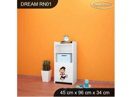 Praktický doplněk k posteli. Slouží k odložení knížky, lampičky, brýlí nebo sklenice s vodou. Děti si zde mohou uložit i poklady, které chtějí mít po ruce před spaním. Noční stolek by měl být stabilní, se snadno otevíratelnou zásuvkou.