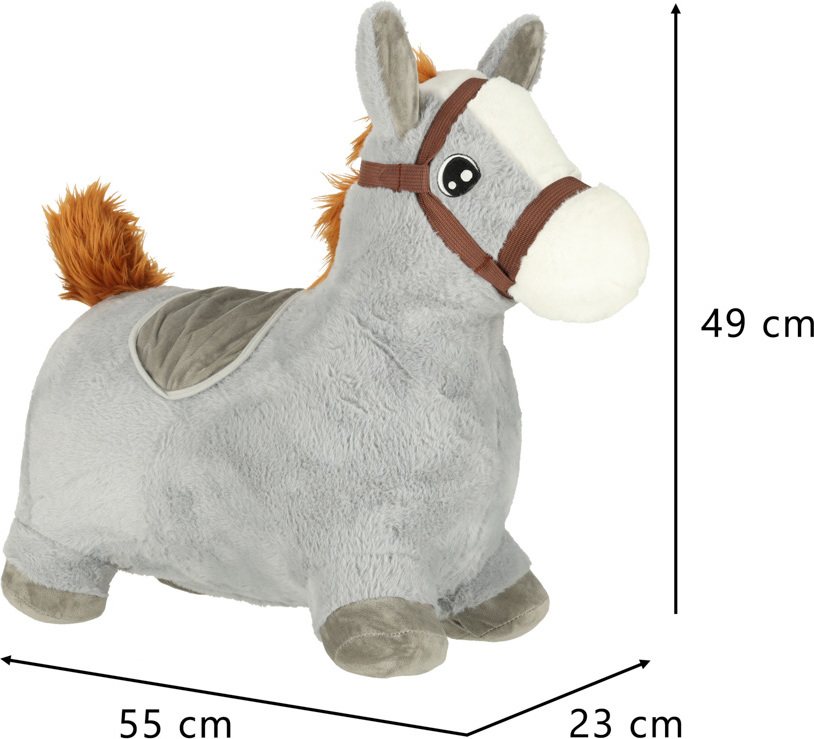 Gumový skákací koník je hračka, která podporuje motorický vývoj, koordinaci a svalovou sílu u dětí. Skákání na skákacím koni stimuluje oběhový systém, zlepšuje rovnováhu a dodává energii – a to jak uvnitř, tak venku. Bez ohledu na roční období je skákací kůň jistým způsobem, jak zůstat aktivní a bavit se. Díky měkkému kožíšku, stabilní konstrukci a pružnému materiálu se gumový skákací koník rychle stane oblíbeným společníkem každého předškoláka. Děti si ho zamilují nejen pro jeho schopnost skákat, ale také pro jeho vzhled - hopsadlo ve tvaru koně připomíná roztomilé plyšové zvířátko, které podporuje péči a hru.