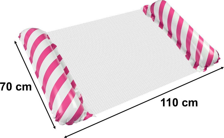 Relaxační matrace jistě zpříjemní váš bezstarostný čas u vody. Můžete se na ní pohodlně usadit nebo se vznášet nad vlnami. Stabilní síťovaná základna a nafukovací boční opěradla poskytují naprosté pohodlí a umožňují vám plně si vychutnat letní atmosféru. Ať už dáváte přednost aktivnímu odpočinku nebo pohodovému opalování, tato nafukovací bazénová matrace jistě splní vaše očekávání. Lze ji také použít jako tréninkovou podložku v bazénu, protože má vztlak až 70 kg. Kontrastní bílé a růžové pruhy poskytují komplexní podporu během plaveckých cvičení. Toto plovoucí bazénové křeslo stojí za to vzít si s sebou jak k moři, tak k bazénu. Je lehké a kompaktní, jistě najde místo v mnoha batozích nebo kufrech. Matrace po vyjmutí z vody velmi rychle schne a její charakteristický tvar umožňuje rychlé složení a umístění do zavazadla.