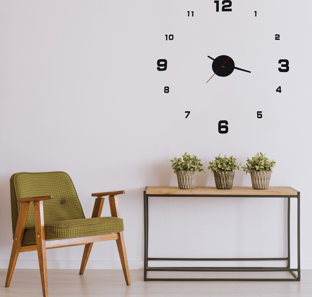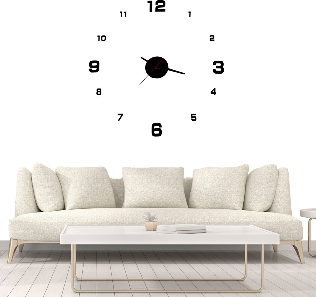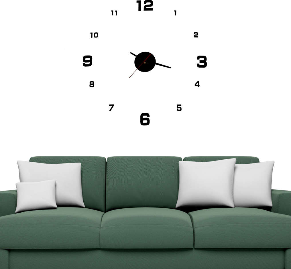 Nástěnné hodiny pro vlastní montáž, budou skvělým doplňkem vašeho bytu, domu, kanceláře. Moderní design oživí každý interiér a dodá mu jedinečný charakter. Skvělý nápad na dárek. Velikost hodin si určíte sami, mohou mít tvar od 70 cm do 130 cm. Díky samolepicím prvkům můžete hodiny snadno připevnit na zeď. Vhodné pouze pro montáž na hladké povrchy. Napájení bateriemi AA, které nejsou součástí balení.