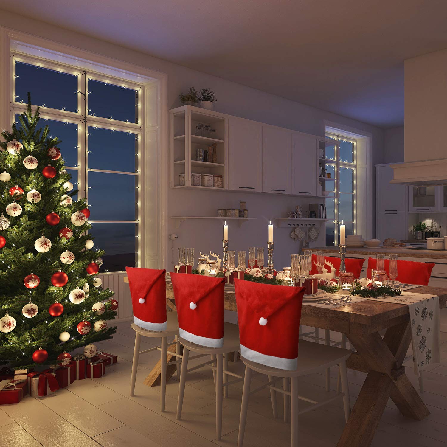 Originální vánoční dekorace, díky které vytvoříte příjemnou atmosféru ve vašem domě. Návlek na židli je velice universální a bude pasovat na opěradla většiny jídelních či kuchyňských židlí.