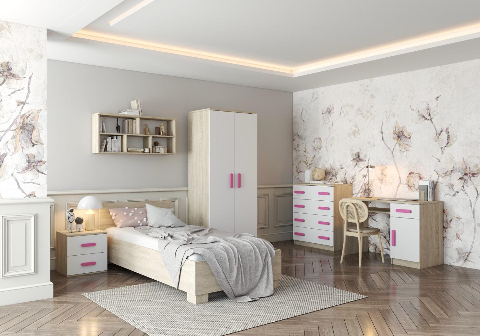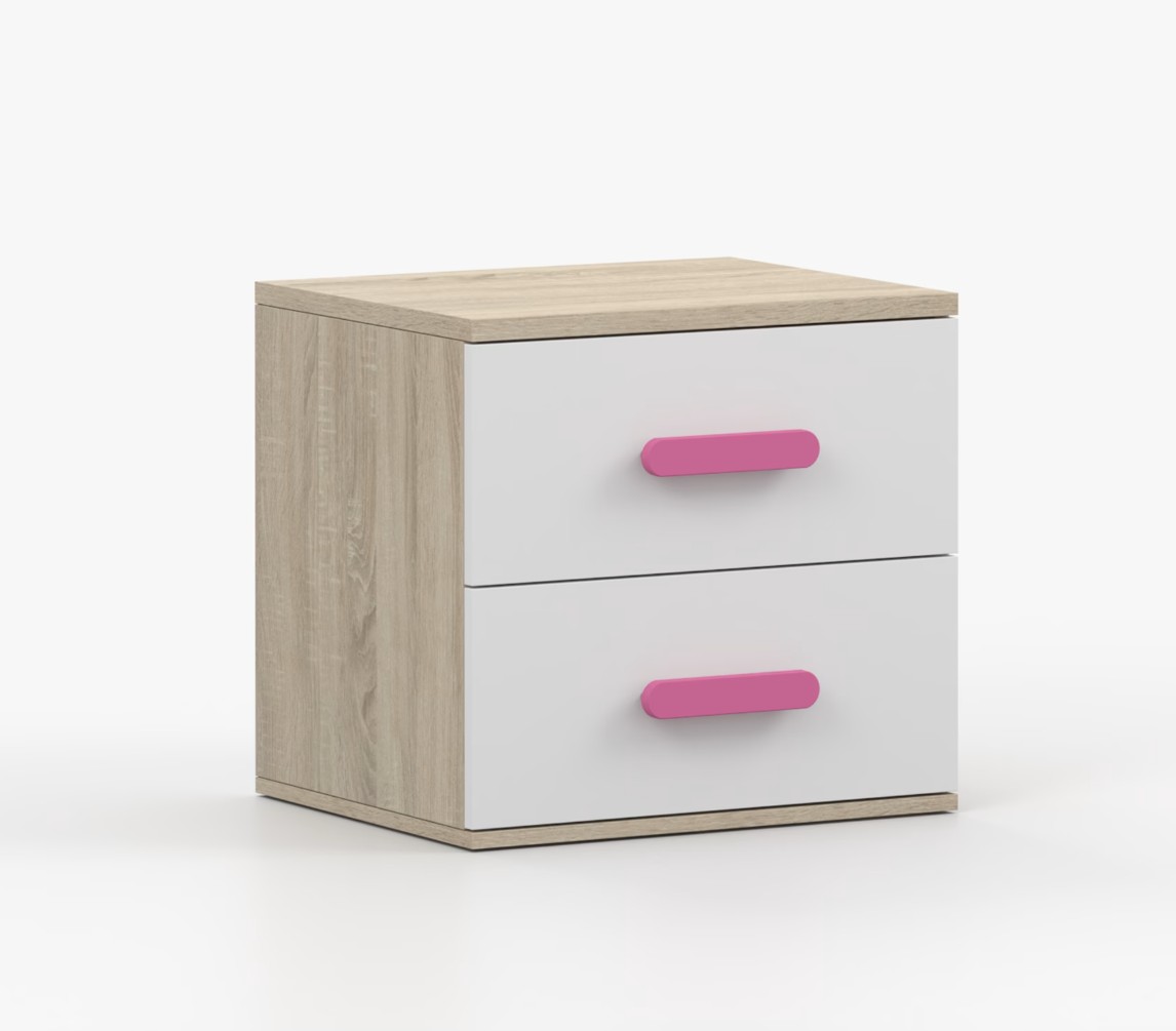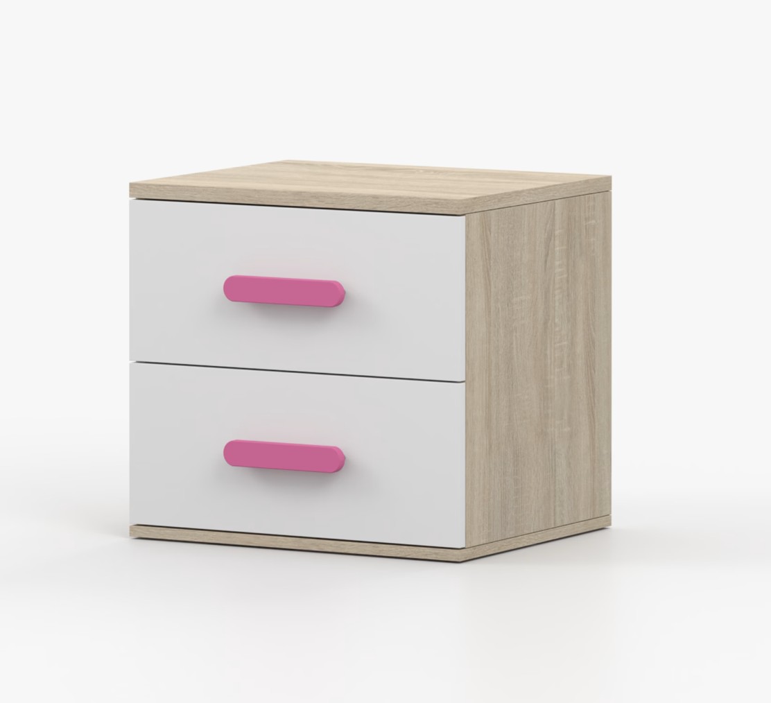 Noční stolek SCOUT je moderní a praktický kus nábytku, vyrobený z kvalitní 16mm laminované desky v dekoru dubu sonoma. Stolek má hrany ohraněny odolnou ABS hranou, která je chrání před mechanickým poškozením. Je vybaven dvěmi prostornými zásuvkami s dřevěnými barevnými úchytkami. Jeho nadčasový design se hodí do různých typů interiérů, například do dětského pokoje nebo pokoje pro studenta.