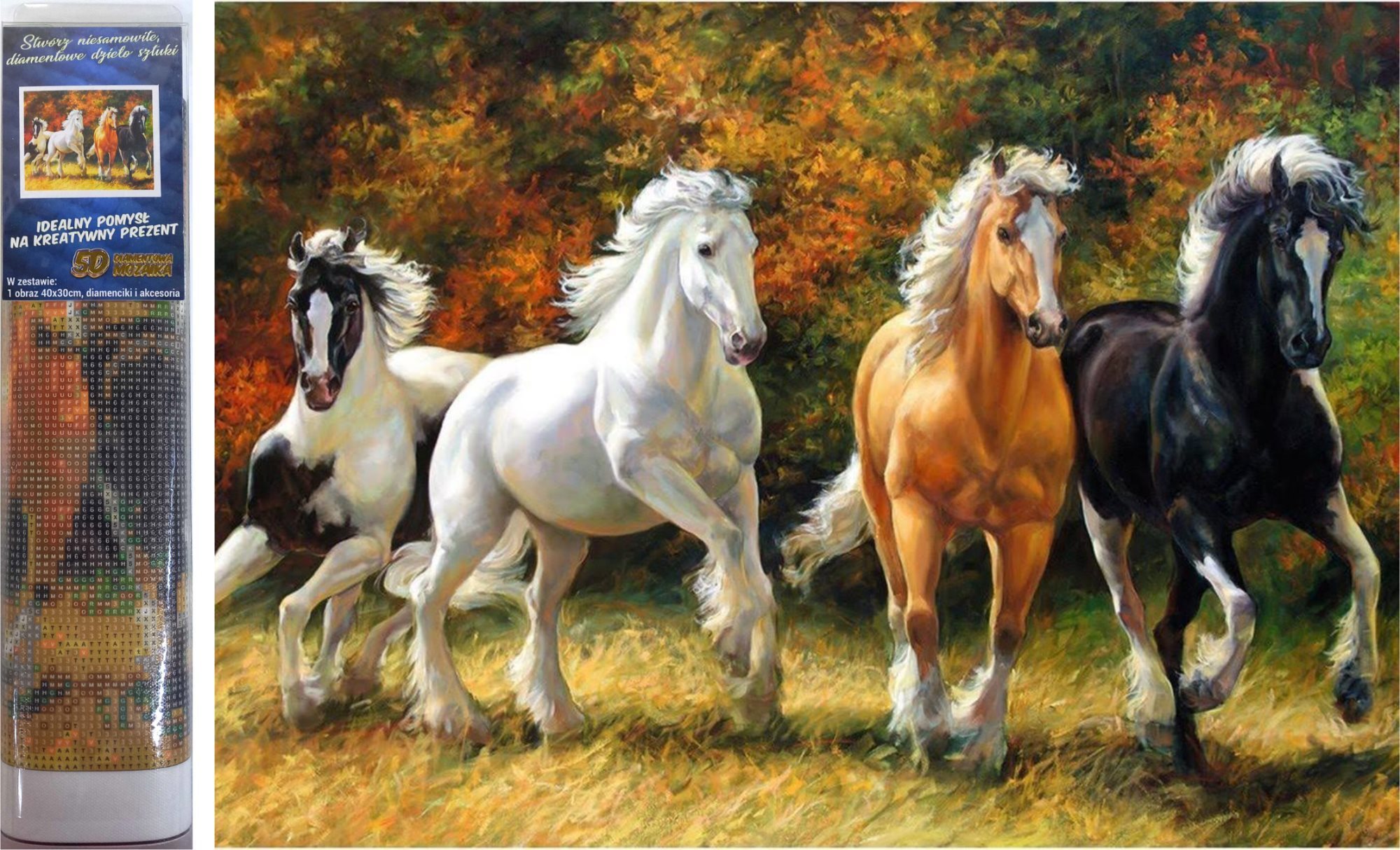 Norimpex Diamantové malování Cválající koně 30x40 cm