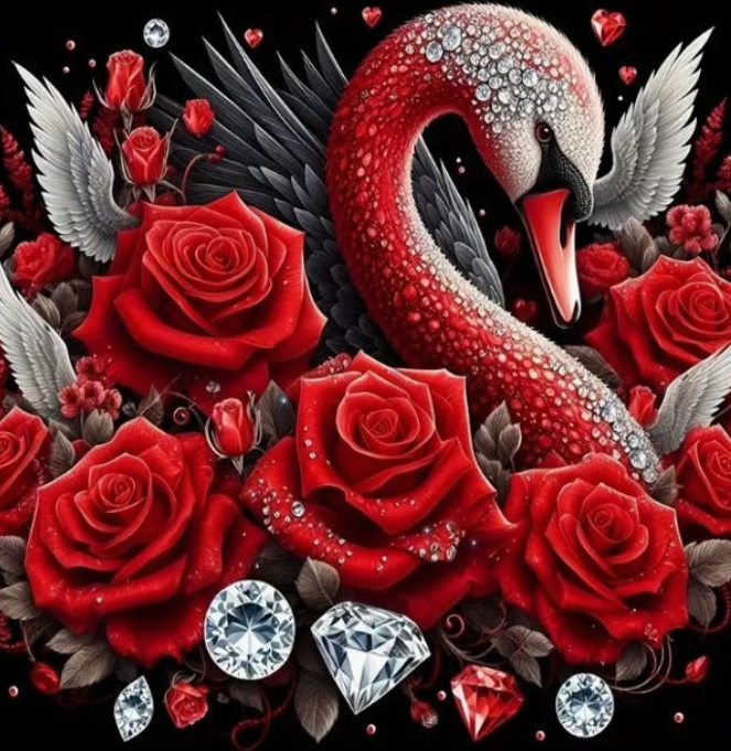 NORIMPEX Diamantové malování Labuť s růžemi a diamanty 30x40cm